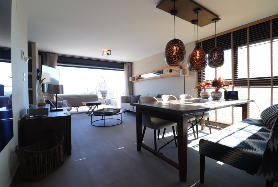 This East Facing, Penthouse, Three Bedroom, Luxurious Apartment in Guardamar del Segura, is located in a highly sought-after area, just a 10-minute walk to a main chain supermarket, 15 minutes to the marina and beach, and a 5-minute drive to the town centre. Beautifully and tastefully presented, this 109m2 apartment boasts modern living, being built in 2018, enjoying spectacular unspoilt views across the pine forest and dunes to the sea from the living area. Natural light streams through the wall-to-wall sliding glazed doors, which disappear seamlessly into the wall, creating a wonderful flow to the amazing terrace and chill-out area, ideal for taking in the stunning surroundings. The open-plan modern fitted kitchen is complemented by a utility room. There are three double bedrooms with fitted wardrobes, the master featuring an en suite, and a family shower room. A private solarium, accessed via the terrace, offers the ultimate in outdoor luxury with a private 2.5 x 1.8 heated pool, built-in BBQ, and kitchen area. From here, you can also enjoy serene views over the river. Additional features include a 25m2 basement parking space, ducted air conditioning, under floor heating throughout, CCTV in the block, video intercom, and a lift providing direct access to the apartment. The communal pool adds the finishing touch to this exceptional property.