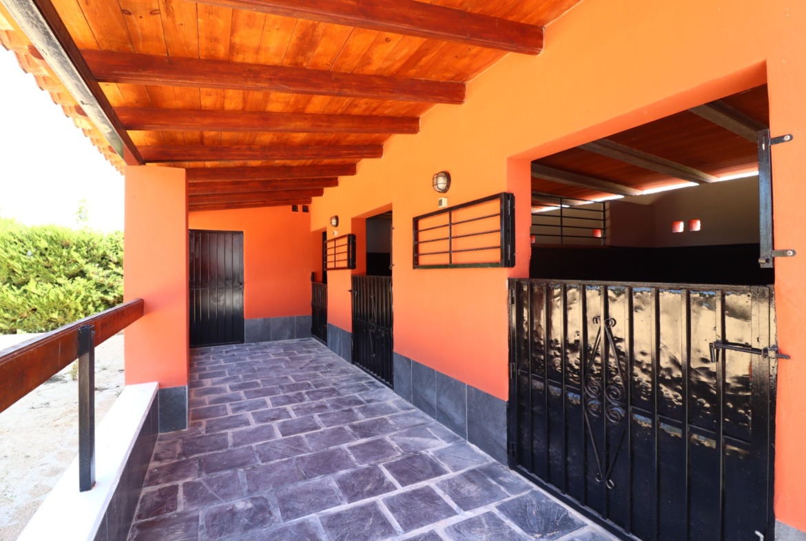 This Truly Desirable, East & West Facing, Four/Six Bedroom, Detached Country Villa with Stables and Paddock on a 2000m² plot in Las Heredades, between Formentera del Segura and Almoradi, is located in a picturesque setting just a short 6-7 minute walk to the charming Spanish village, and only a 5-minute drive to Formentera del Segura, Rojales, and Benijofar. The stunning beaches and popular promenade of Guardamar are just a 15-minute drive away. The main villa features 4 bedrooms and 3 bathrooms plus 1 cloakroom. One of the bedrooms is currently used as a golf simulator room, while the master bedroom boasts a walk-in wardrobe and a stunning en suite with both a bath and shower. Two of the remaining bedrooms also have en suite bathrooms. The villa includes a fabulous country-style modern kitchen with amazing doors leading from the dining area to an outdoor terrace that overlooks the private pool. The outdoor area is perfect for entertaining with an outside kitchen, BBQ, and entertainment area. Separate guest accommodation offers an additional 2 bedrooms, a wetroom, kitchen, and living room, making it perfect for visitors or extended family. The property includes stables and a paddock, an office in the main villa’s living room, air conditioning throughout, heating panels, fitted wardrobes, and a separate utility room. The outdoor space features stunning tile around the swimming pool, ample off-road parking under the carport, and a feature fountain. This villa masterfully blends modern and traditional features throughout, making it a truly unique and desirable home in Costa Blanca South.