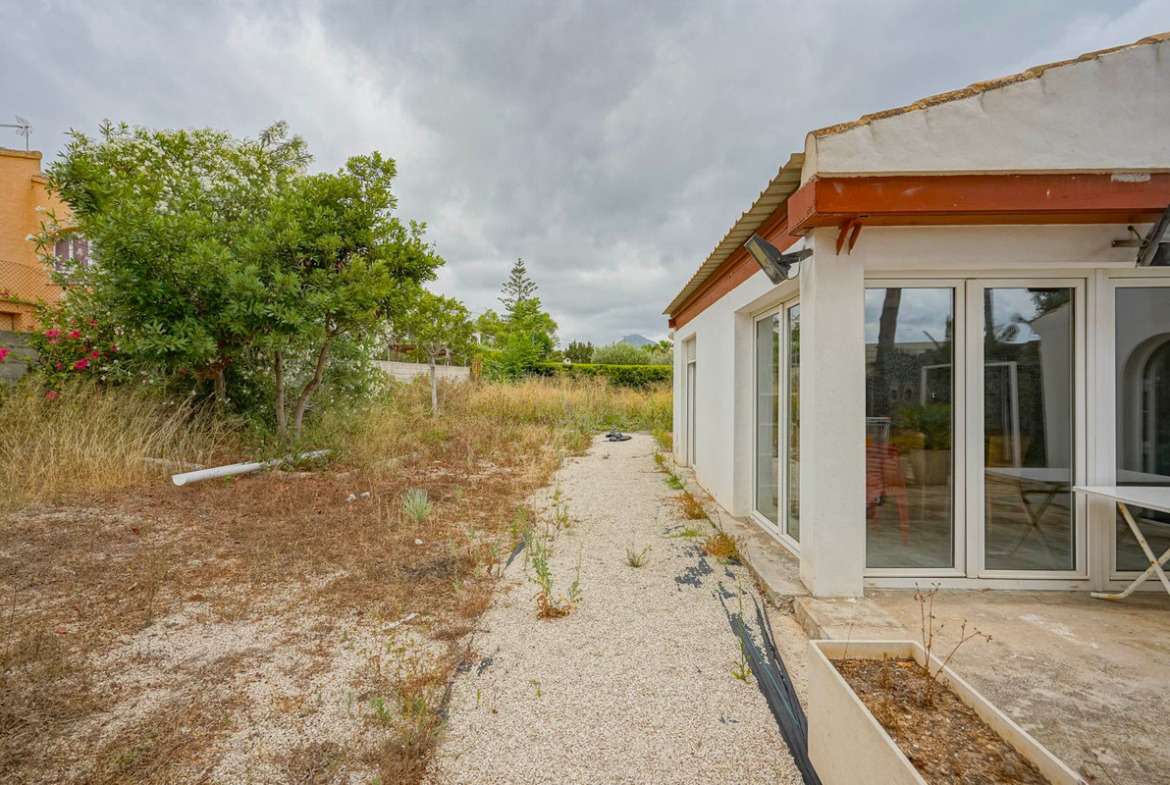 Plot of 2,600 m2 with a house and the possibility of dividing it into two buildable plotsThis plot is located only a short distance from the sandy beach of Jávea and offers an excellent investment opportunity. The plot can be perfectly divided into two independent buildable plots of approximately 1,300 m2 each, suitable for building two luxury villas.Currently, the plot contains a single-story villa with a built area of 152 m². The property features a living room with an open kitchen, a second living-dining room with a closed kitchen, three bedrooms, two bathrooms, and a patio with a storage room.This plot is within walking distance of the sandy beach of Jávea and enjoys an excellent location close to all amenities. Supermarkets, restaurants, medical offices, sports facilities, and other daily necessities are all within a short distance. This location combines privacy with the convenience of a central setting.