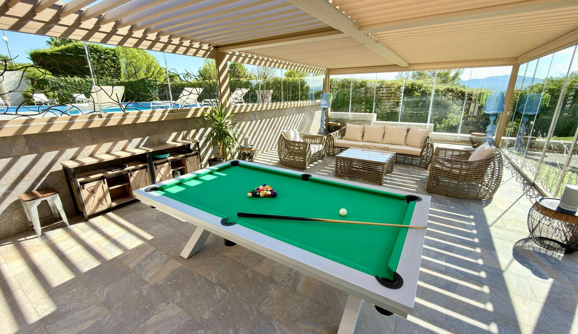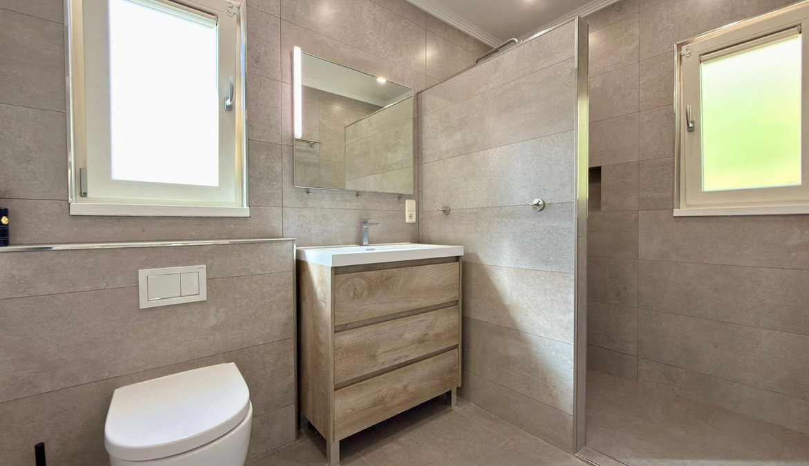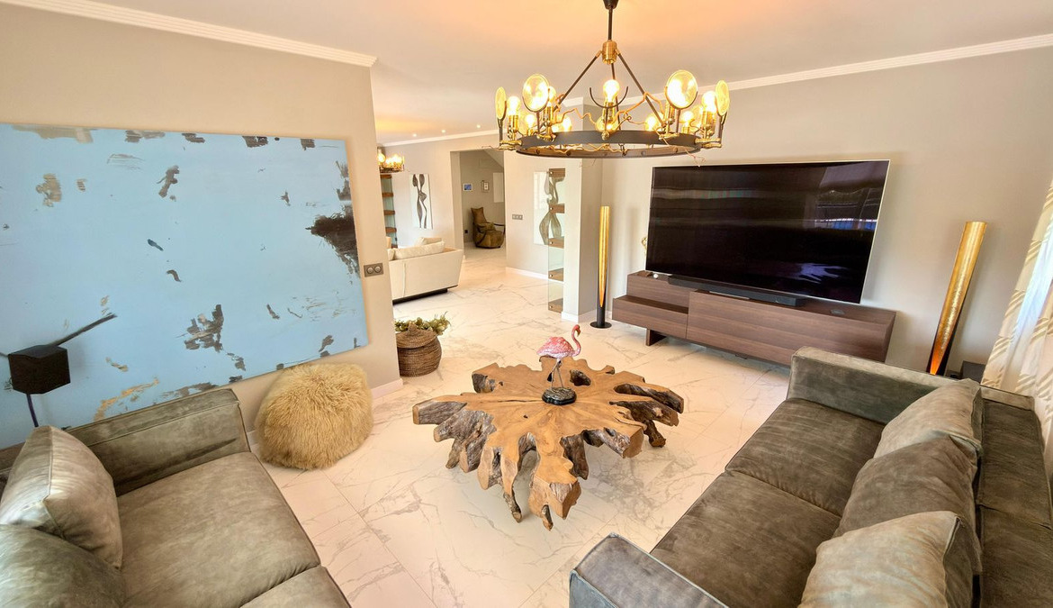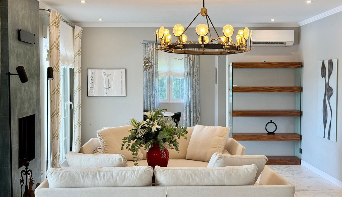 The villa is equipped with the latest comforts and technology to ensure a luxurious living experience. It offers air conditioning (heating and cooling) and underfloor heating throughout, as well as double-glazed windows with electric blinds for both efficiency and comfort.