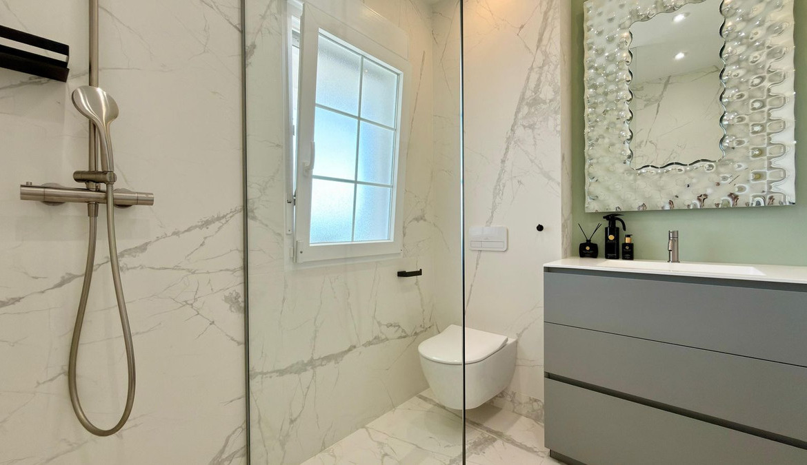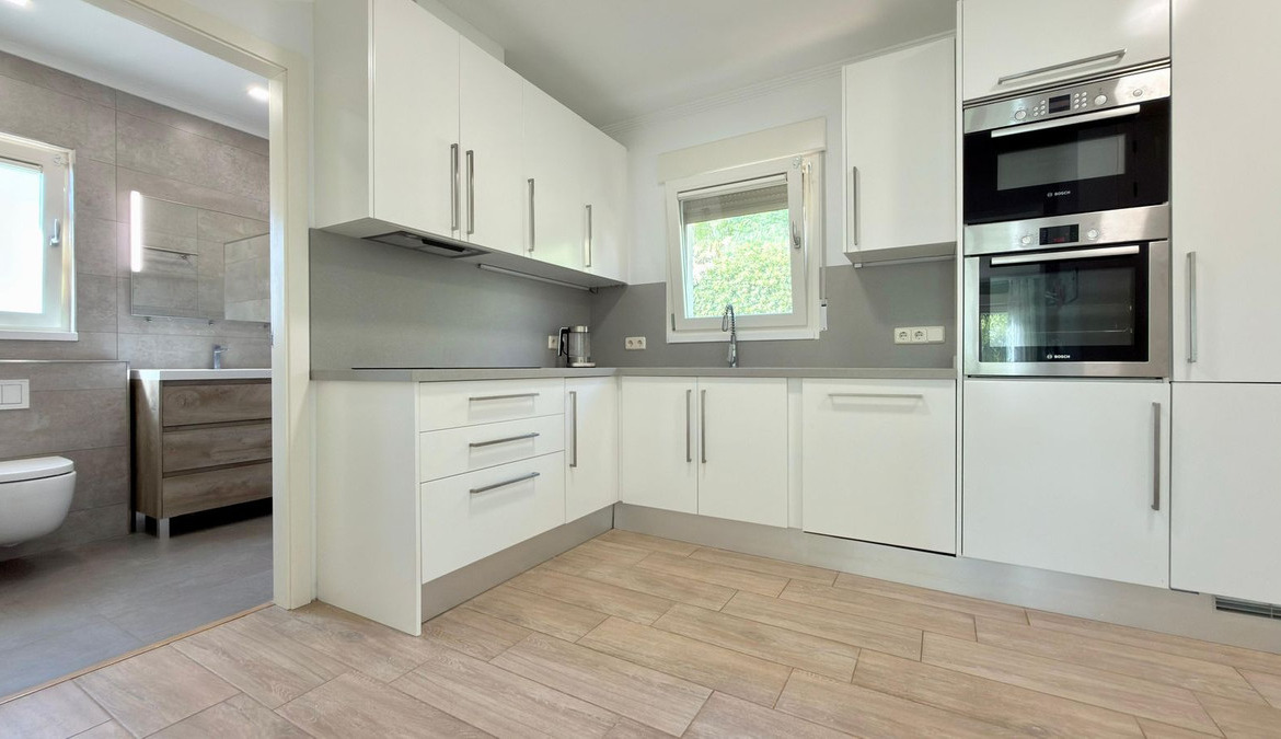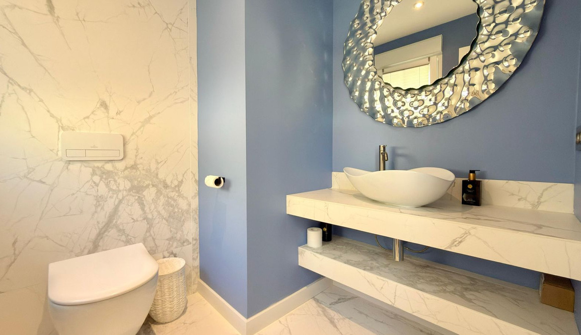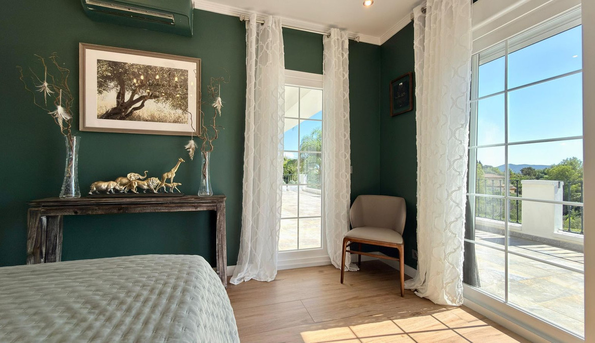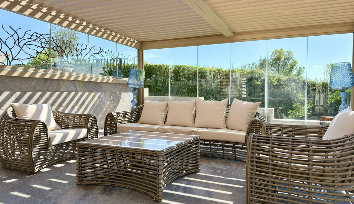 The villa is equipped with the latest comforts and technology to ensure a luxurious living experience. It offers air conditioning (heating and cooling) and underfloor heating throughout, as well as double-glazed windows with electric blinds for both efficiency and comfort.