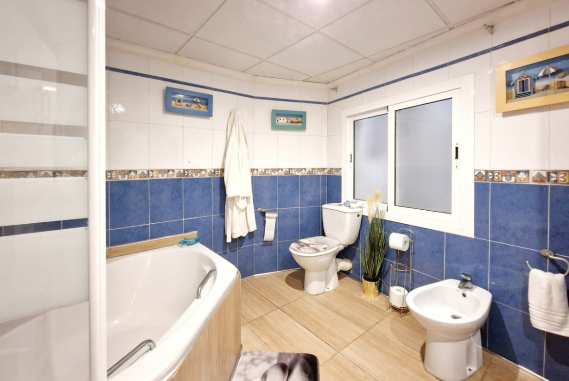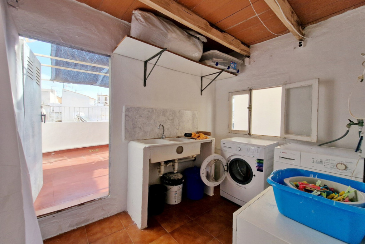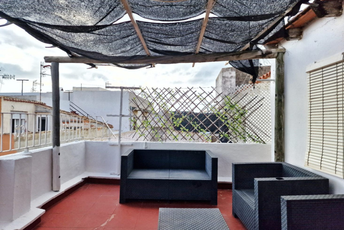 On the ground floor, we find a space that can be used for residential or commercial purposes, with a living room, kitchen, two bedrooms, and a bathroom.The first floor features a spacious living-dining room opening to the kitchen, three bedrooms, a small additional room, and a bathroom.On the second floor, the layout varies slightly, offering another living room, kitchen, three bedrooms, and a bathroom.On the rooftop, a spacious rooftop terrace allows you to enjoy the Mediterranean climate, as well as two small buildings: one designated as a storage room and another with a bedroom and bathroom, perfect for guests or as an independent studio. There is also a laundry area.Currently, the house is divided into three independent homes, offering great potential for tourist use, which can be transformed into vacation apartments, long-term rentals or even converted back into a single family residence with spacious areas.