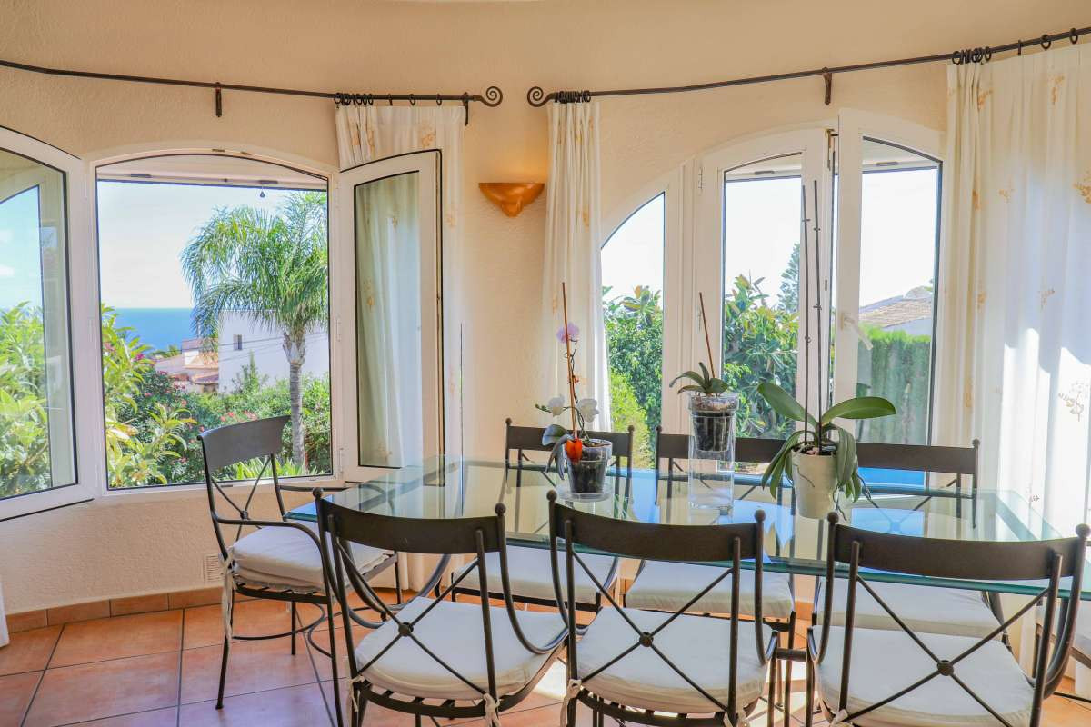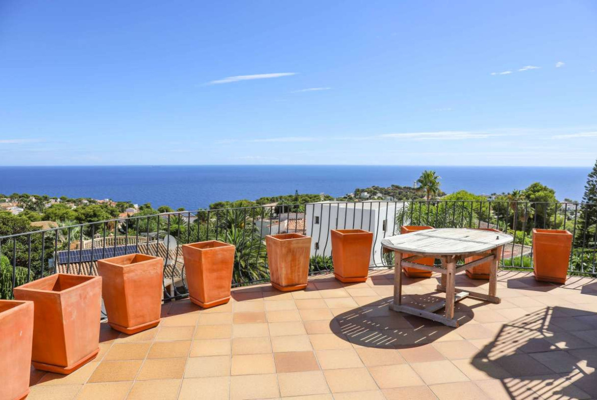 Welcome to your dream villa in Balcón al Mar, Javea! Perched at the highest point of the area, this stunning property offers breathtaking 270degree sea views that will leave you in awe.This spacious villa features four beautifully appointed bedrooms, including two double bedrooms with ensuite bathrooms located on the top floor, providing a private retreat with spectacular views. The main floor hosts an additional two bedrooms, perfect for family or guests.The heart of the home is a large living room with a cozy fireplace, seamlessly connected to a dining area that invites you to enjoy meals while soaking in the panoramic vistas. The modern kitchen, complete with a bar, flows into another dining area that overlooks the inviting pool and terrace, making it ideal for entertaining or relaxing in the sun.The villa is thoughtfully designed across three floors, ensuring ample space and comfort. An independent apartment, currently used as an office, offers the flexibility to be converted into a guest suite or rental space, adding to the property's versatility.Conveniently located, this villa is just a short drive from Javea Arenal and is surrounded by a variety of restaurants and supermarkets, making daily living a breeze. You’ll also be close to famous viewpoints, perfect for enjoying the stunning natural beauty of the area.Equipped with aerothermal heating and air conditioning, this home ensures year round comfort. Additional features include double glazed windows, two garages, and numerous spots to bask in the sun or enjoy the shade, making it perfect for all your living needs.Don’t miss the opportunity to own this exceptional villa in one of Spain's most sought after locations!