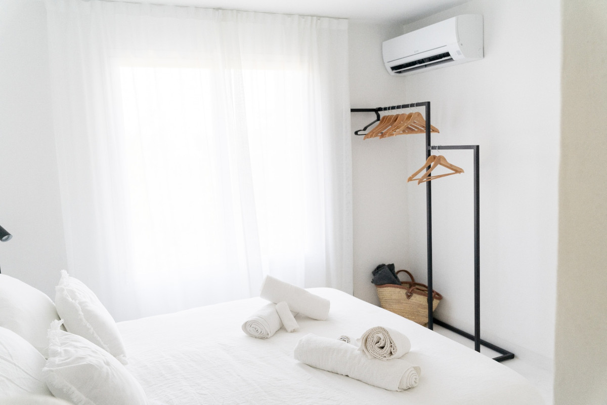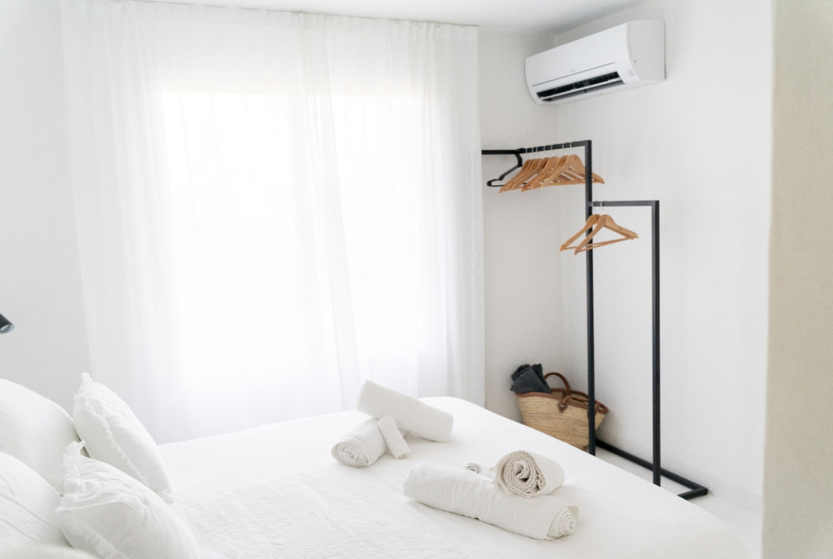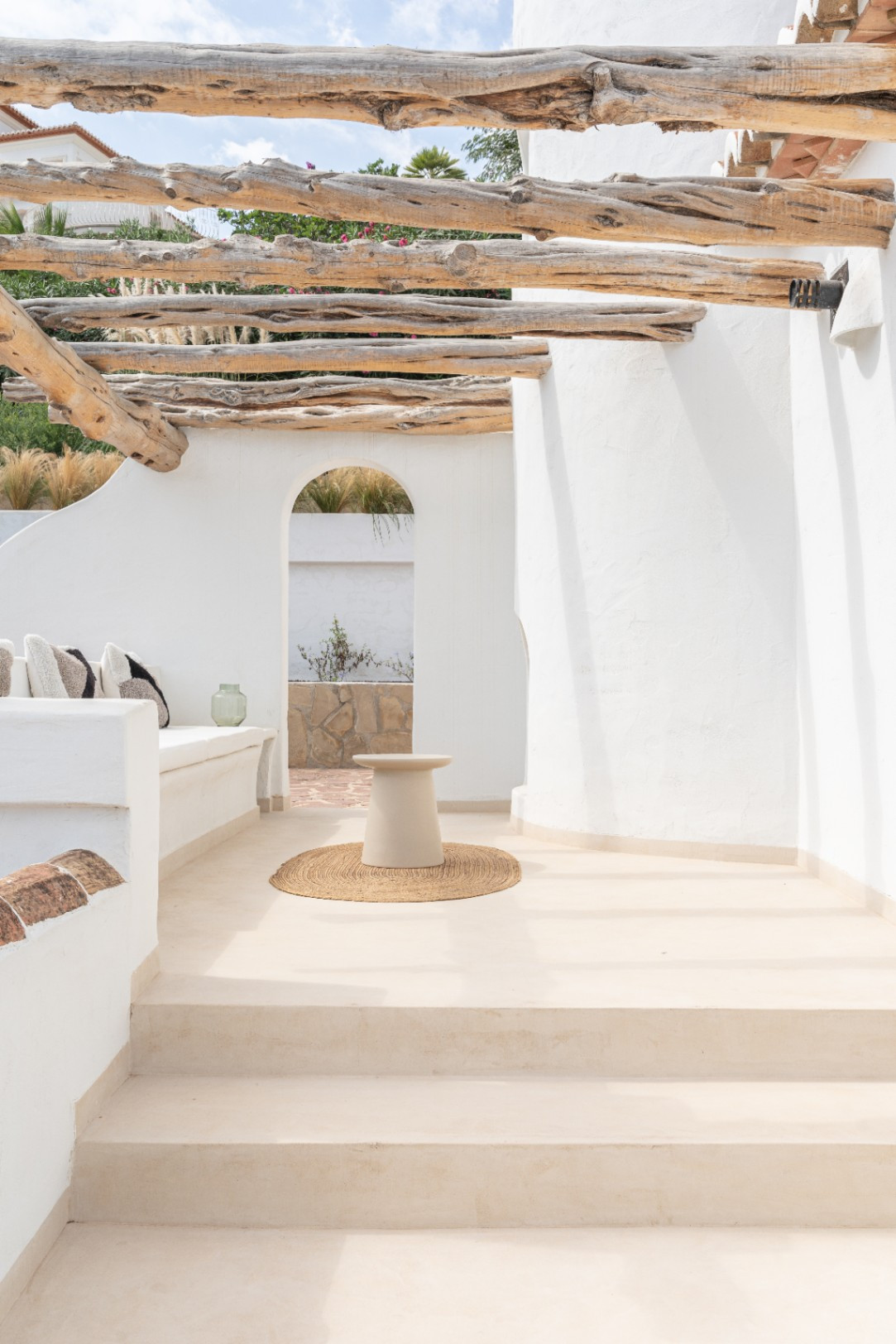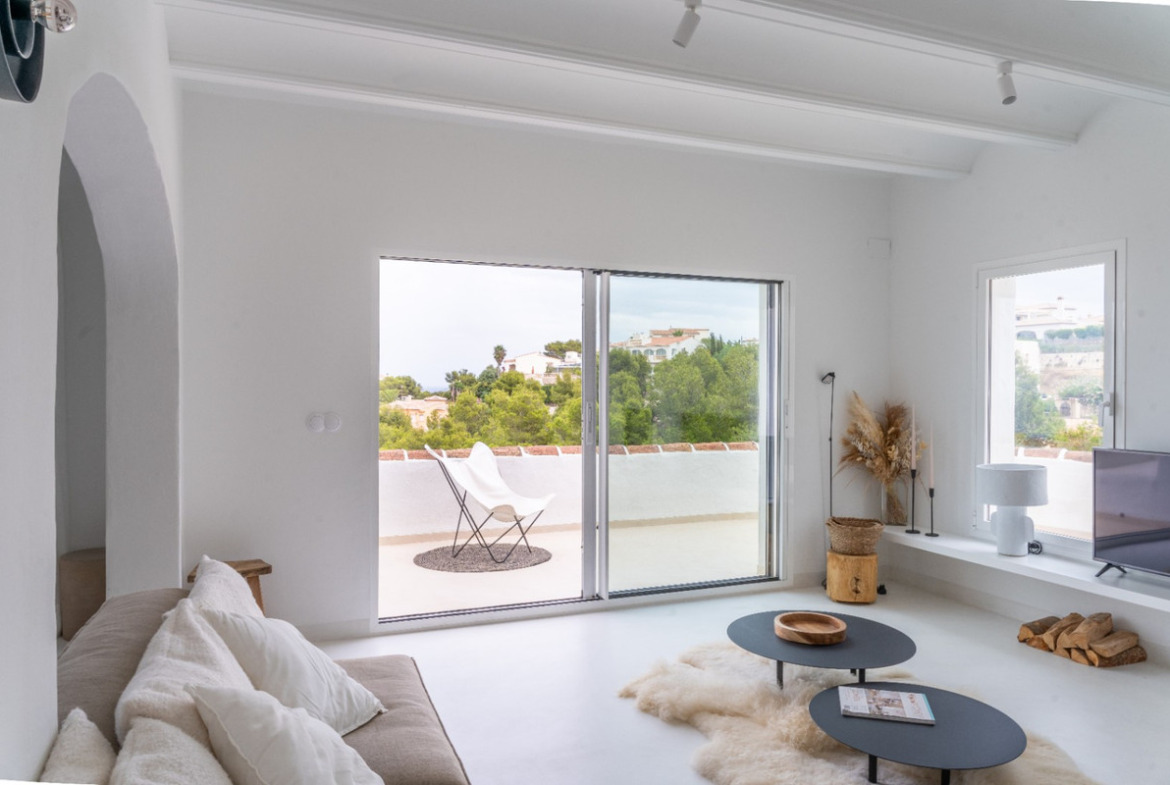 A beautiful, traditional Spanish villa located in Balcon al Mar, which has recently been completely renovated and transformed into a modern oasis in Ibiza style. With its white walls, stylish floors, and a combination of black and wooden accents, the house exudes a refined and luxurious atmosphere. The large windows offer panoramic views over the Mediterranean Sea and the protected island of Portitxol, making you feel like you are on vacation right away.
