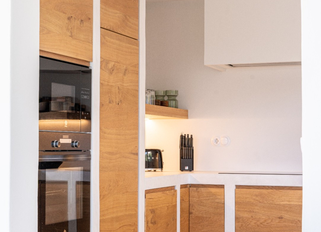 First Floor: A bright and spacious living room with a small desk, and a fully equipped kitchen that meets all your culinary needs.