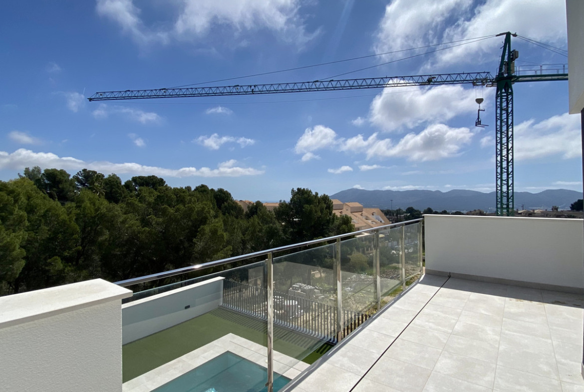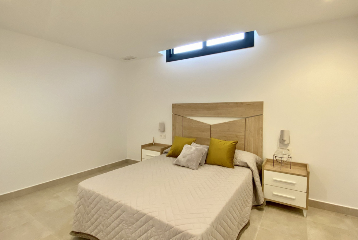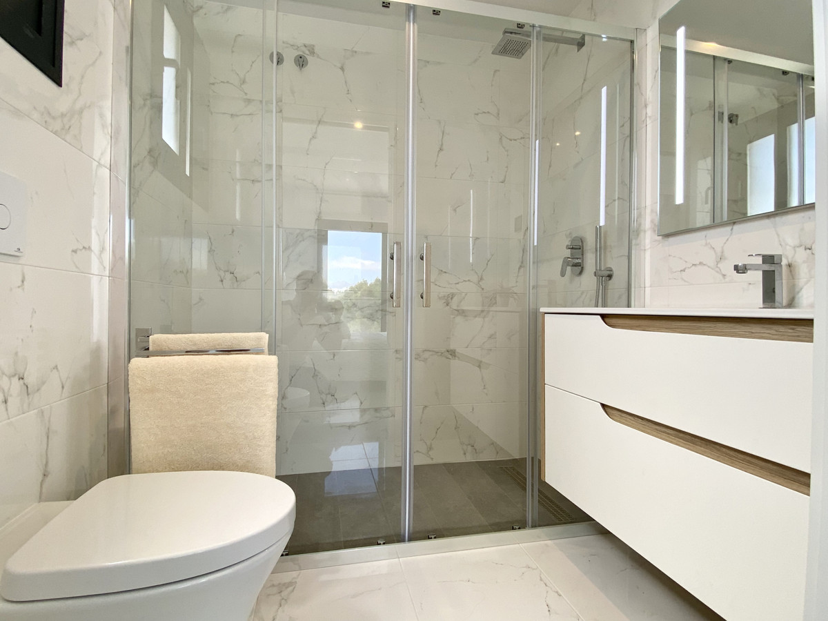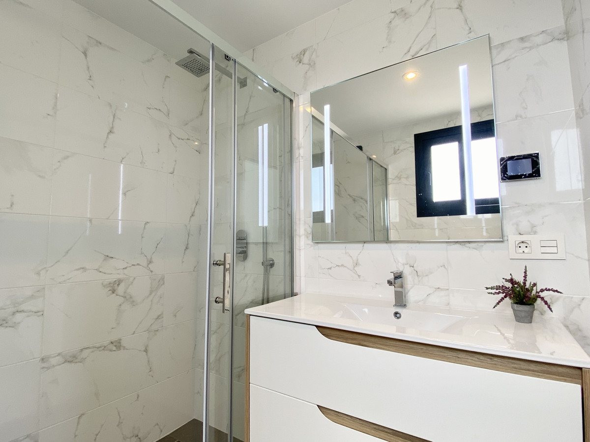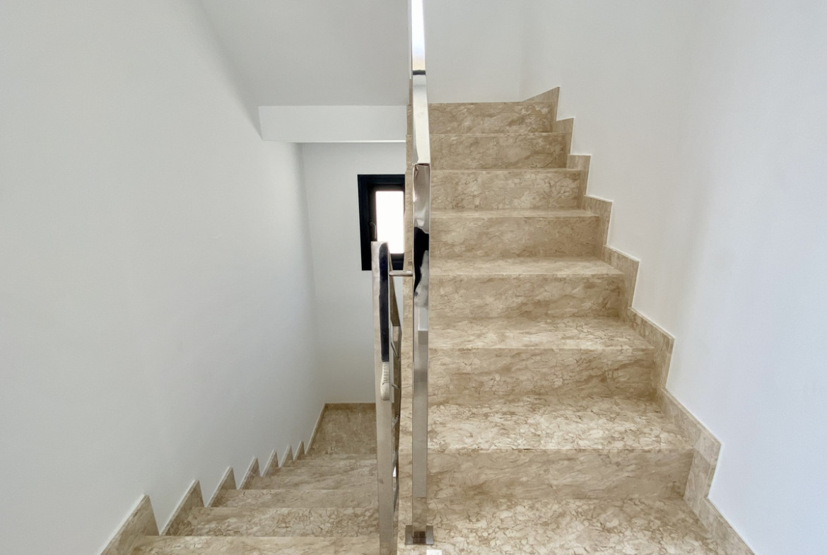 On the first floor, there are two en-suite bedrooms with their respective terraces. The hallway provides access to the solarium, which serves as the flat roof of the house.