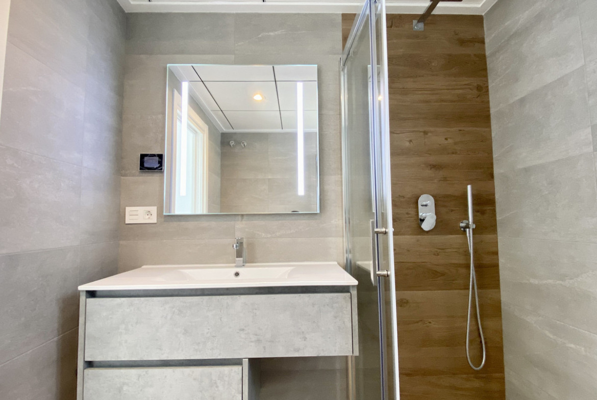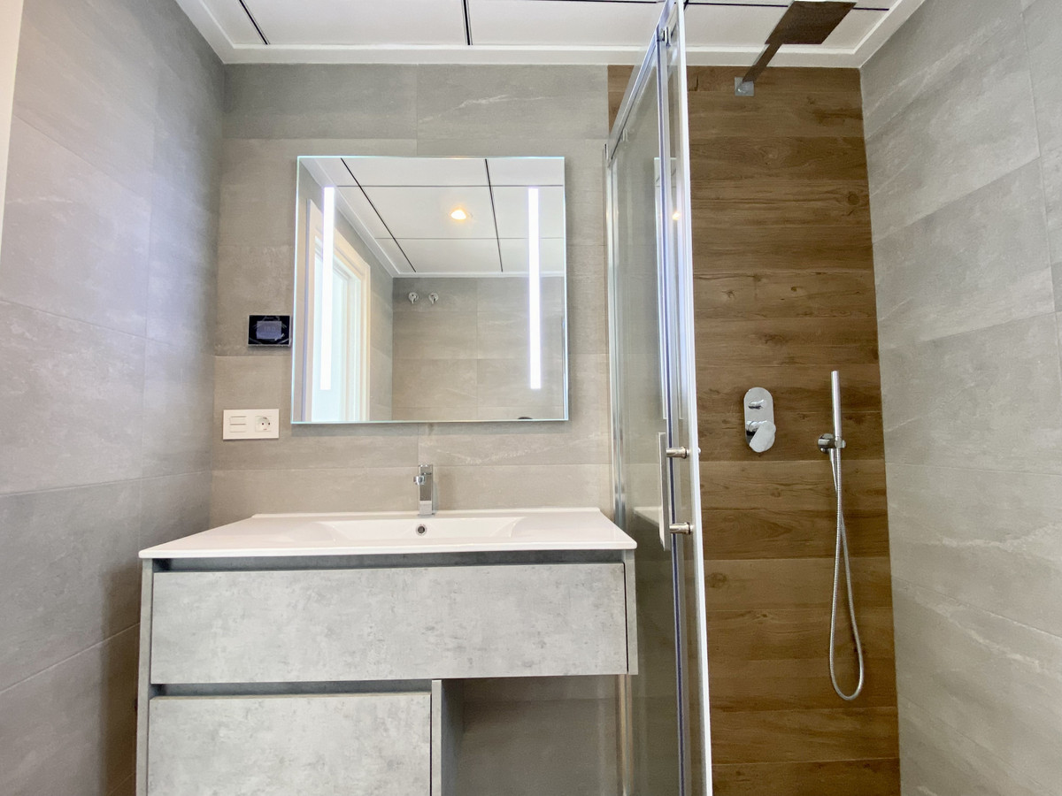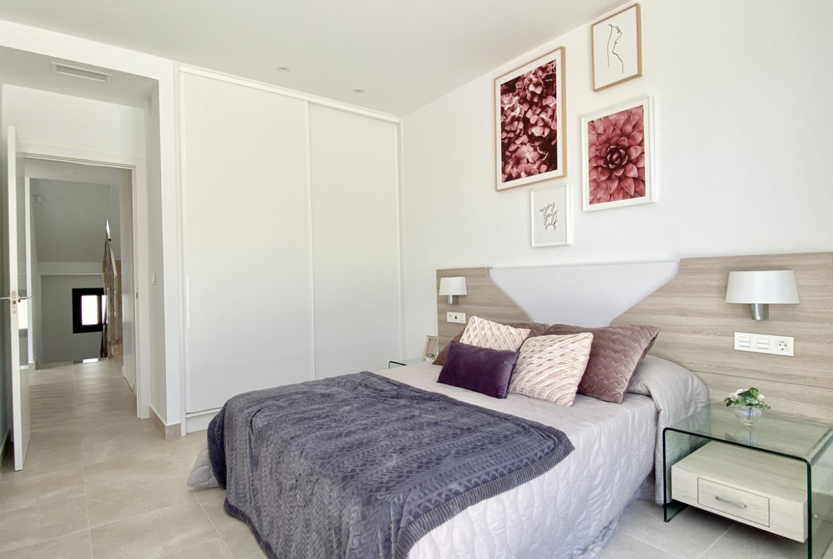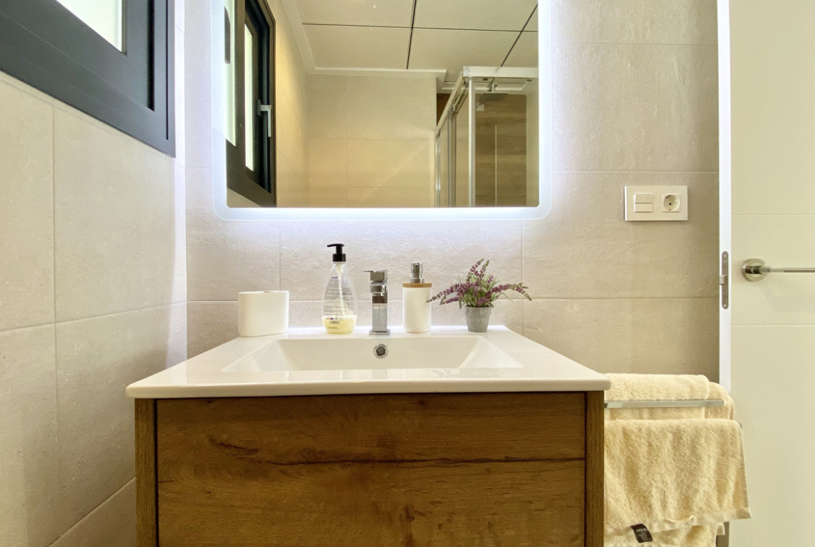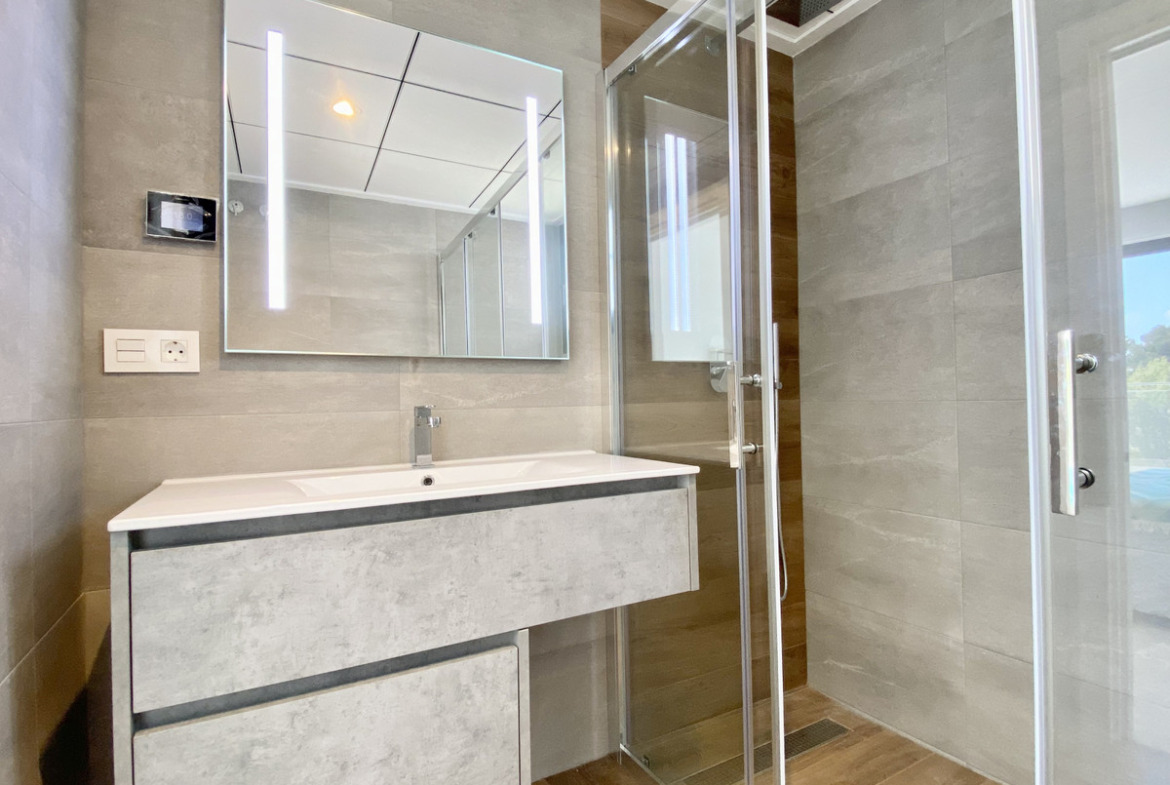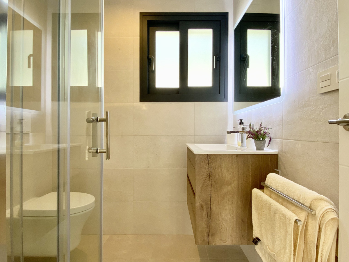 On the first floor, there are two en-suite bedrooms with their respective terraces. The hallway provides access to the solarium, which serves as the flat roof of the house.