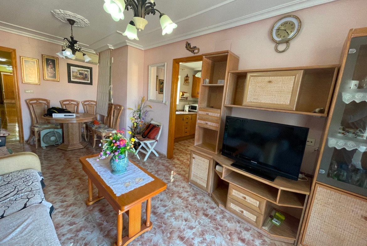 This beautiful 2-bedroom, 2-bathroom apartment is a true gem. It features a separate kitchen, perfect for preparing your favorite meals, and a spacious living room ideal for relaxing and sharing special moments. The large north-facing terrace offers an excellent space to unwind, enjoy the fresh air, and take in side sea views that add a touch of serenity and beauty.Located just 200 meters from the beach, it provides easy access to the sea, allowing you to enjoy the sun and sand whenever you wish. For added convenience, the property includes a closed garage, ensuring your vehicle's safety and making daily life more comfortable.This apartment perfectly combines comfort, beautiful views, and a privileged location near the coast.Community fees: €400 per year Property tax: €249 for the home and €29 for the garage