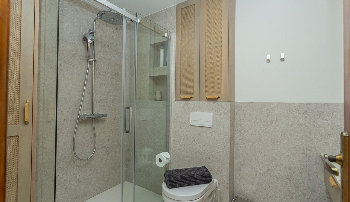 Bedrooms: Three bedrooms, all with air conditioning, wardrobes and large windows with electric shutters. It should be noted that all rooms are equipped with mattresses from an exclusive international brand, used by the best hotels around the world, which offer maximum quality and comfort with adjustable hardness.