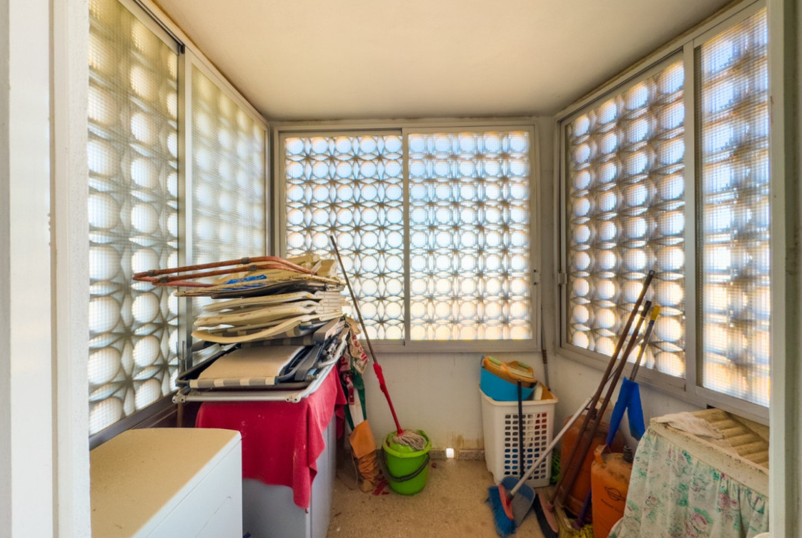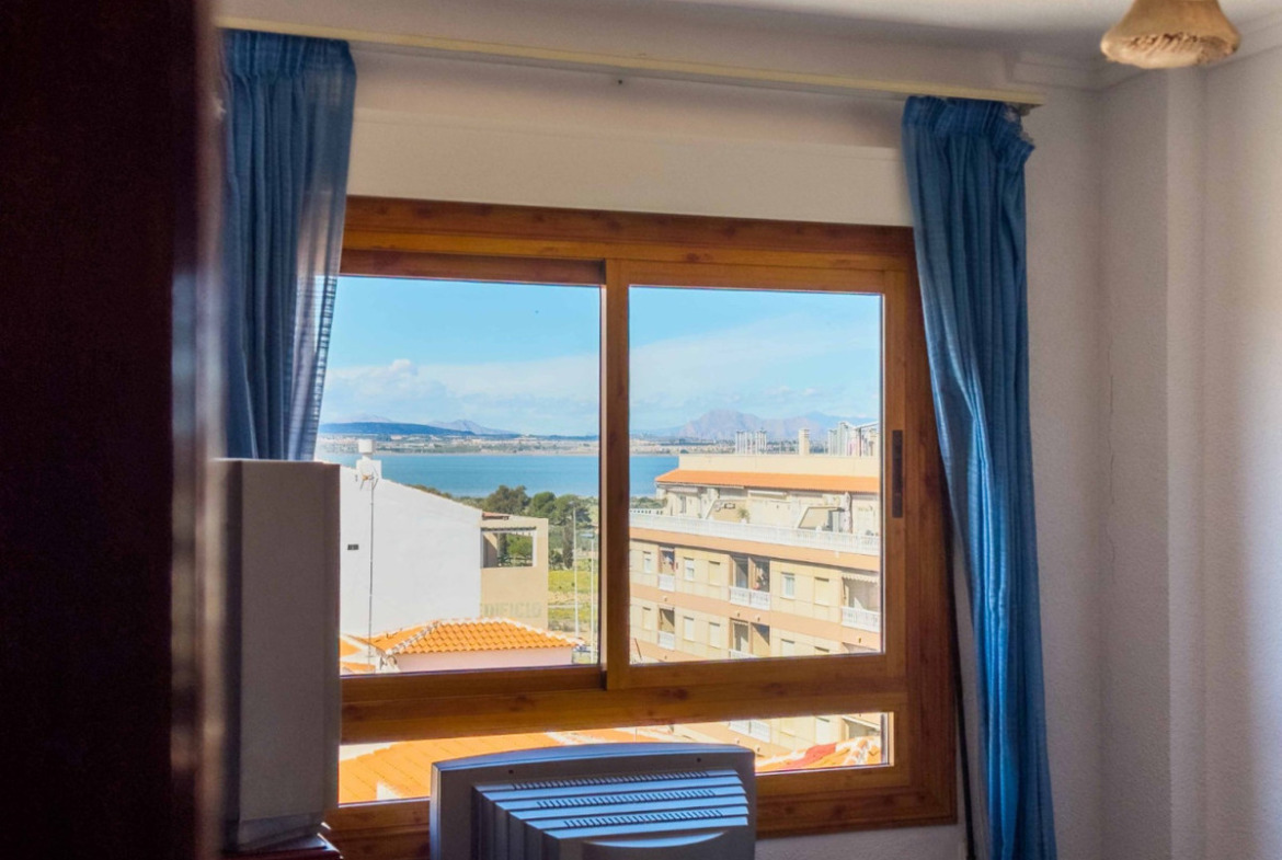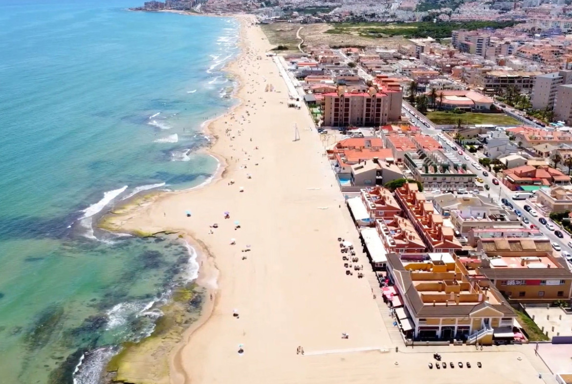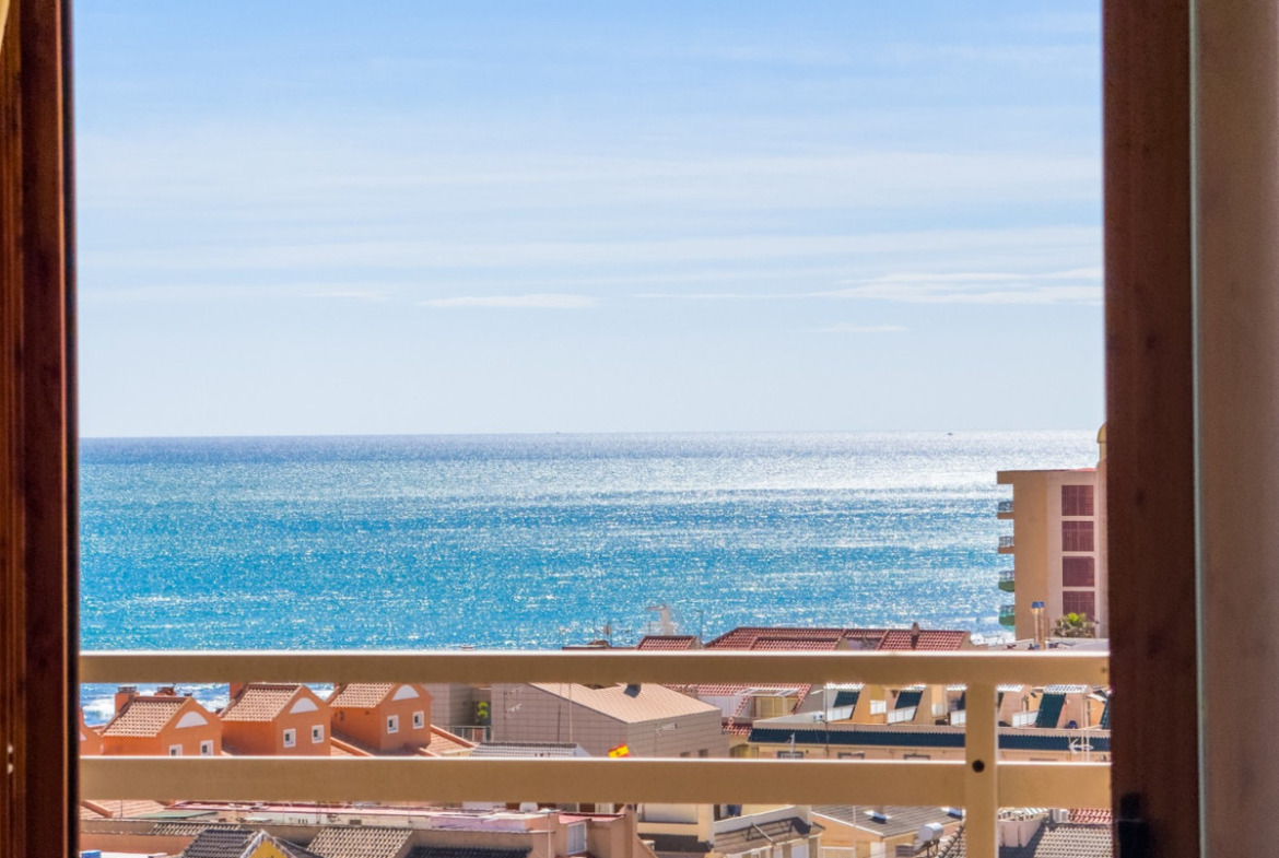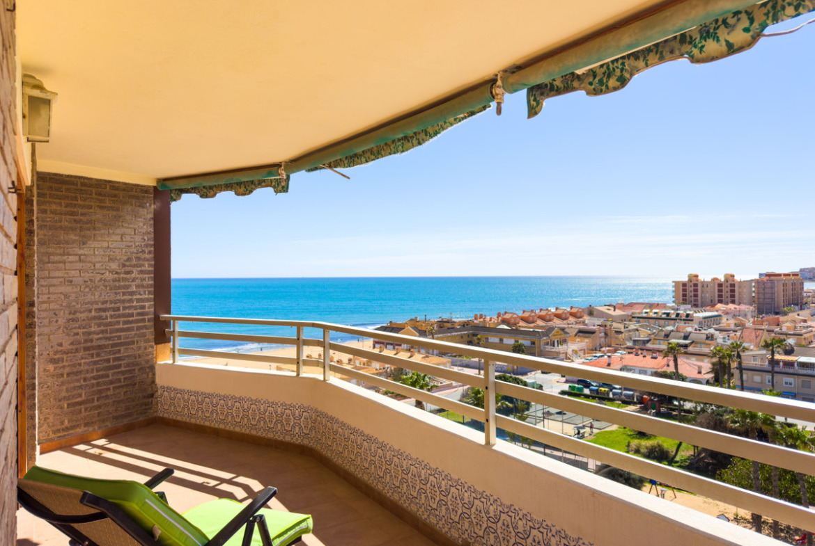 A very spacious beachfront apartment is for sale in the center of La Mata, Torrevieja. The apartment is located in the heart of the town and boasts beautiful lateral sea views from the exterior. It is located on the seventh floor of a building with two elevators and a ramp for people with reduced mobility. The apartment is distributed as follows: a spacious living-dining room with access to the terrace, which is approximately 23 m2 southeast-facing and offers beautiful sea views, three bedrooms with all exterior windows and built-in wardrobes, a separate kitchen with all appliances and access to the utility room, and two full bathrooms with showers. In the basement of the same building, there is a parking space, which is included in the price. The property has an excellent location, a stone's throw from the beach and just 2 minutes from the center of La Mata, with all amenities nearby, such as supermarkets, local shops (food and other services), and restaurants.