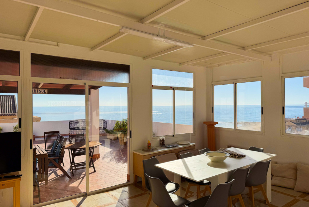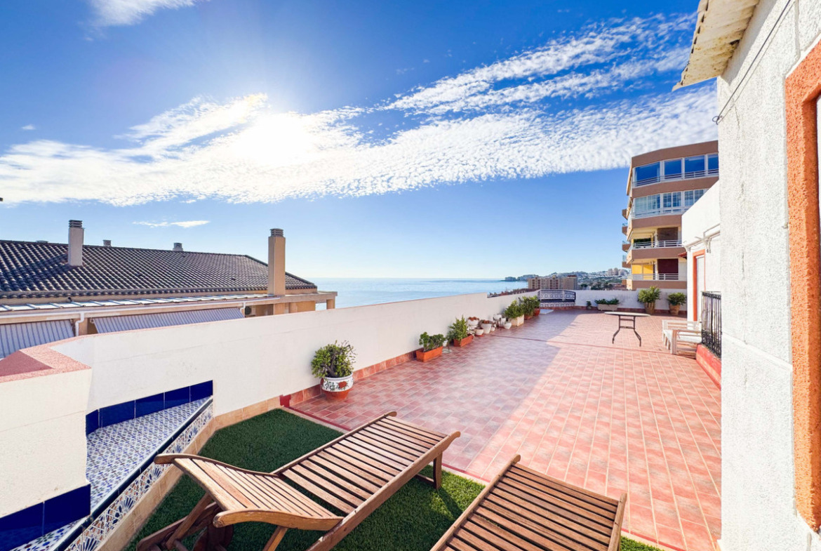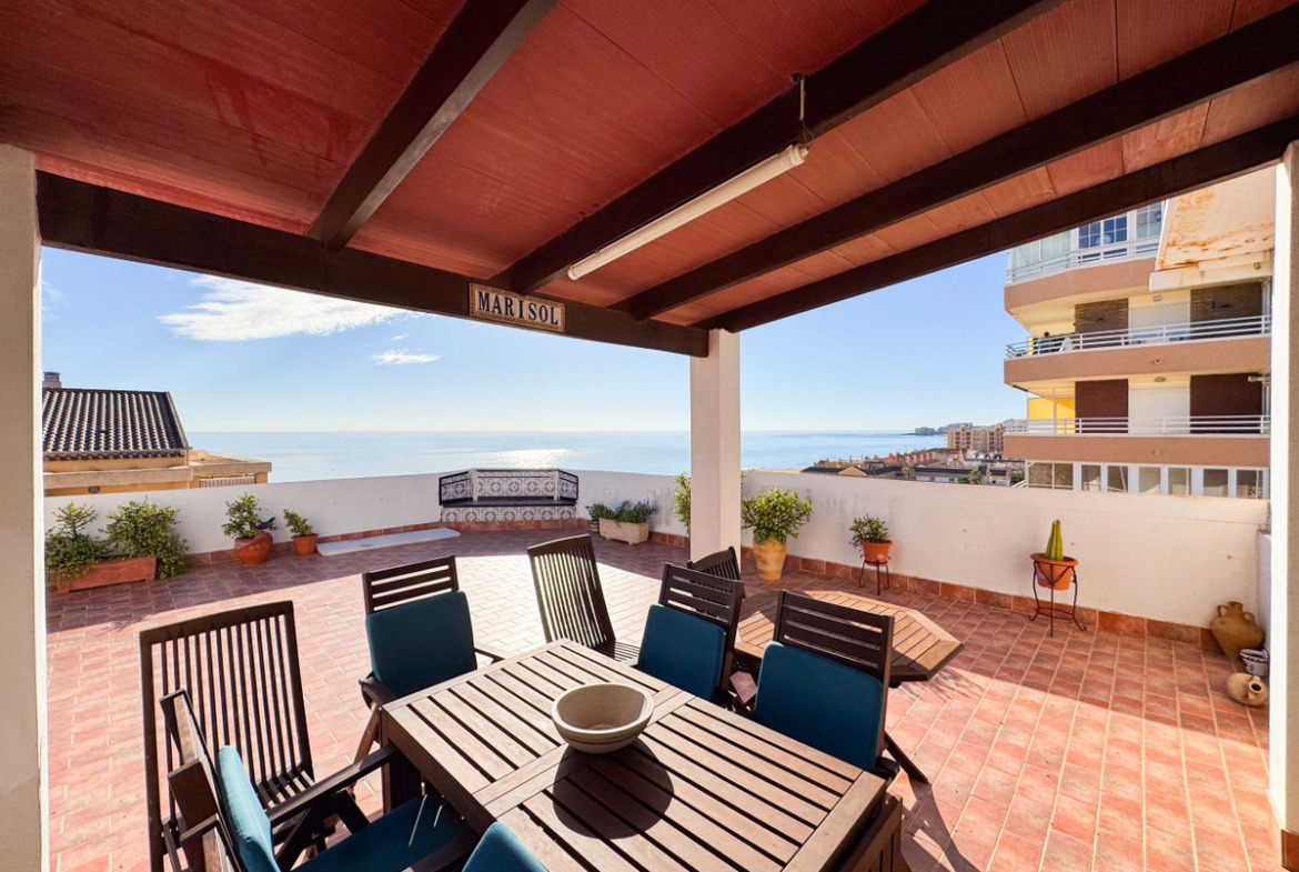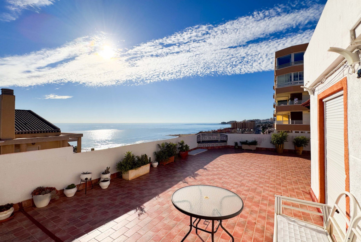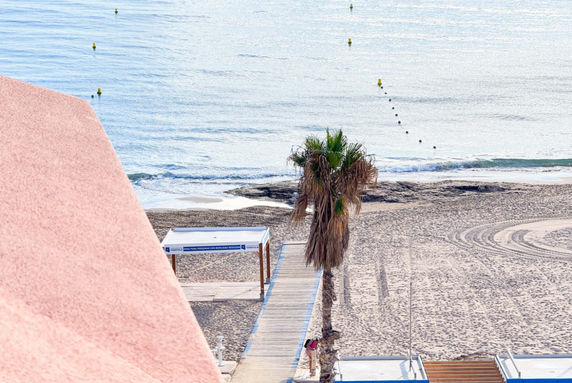 This penthouse in La Mata, Torrevieja, features a large corner terrace with panoramic sea views, offering a unique opportunity to live close to the beach. With 161 m2 built, this apartment has four spacious bedrooms, two large living rooms, and a dining area, alongside two full bathrooms, including one en suite. The layout includes an independent kitchen with laundry room and a glazed terrace used as a dining area, perfect for enjoying morning and afternoon sun with sea views from almost every room. The property allows for customization and renovation to add your personal touch. Located in the heart of La Mata, just 20 meters from restaurants, supermarkets, pharmacy, and other services, this penthouse combines comfort and a prime location. Ideal for residential investment with seasonal rental potential or as a permanent home. Don’t miss the chance to visit this exceptional property. Contact us to schedule a physical visit or request a virtual tour and detailed plans.
