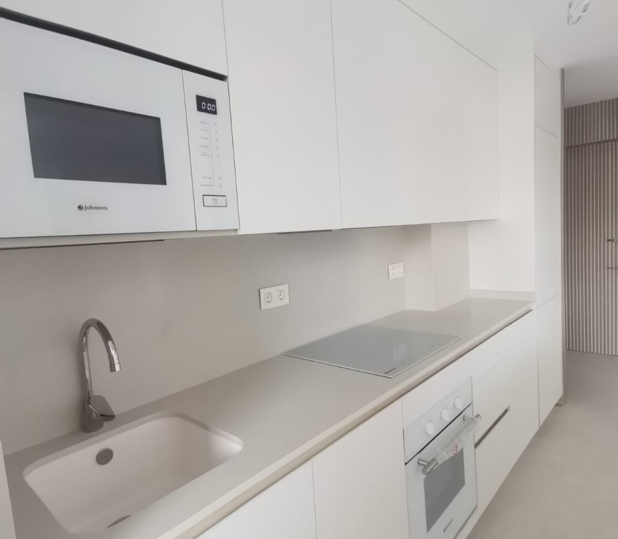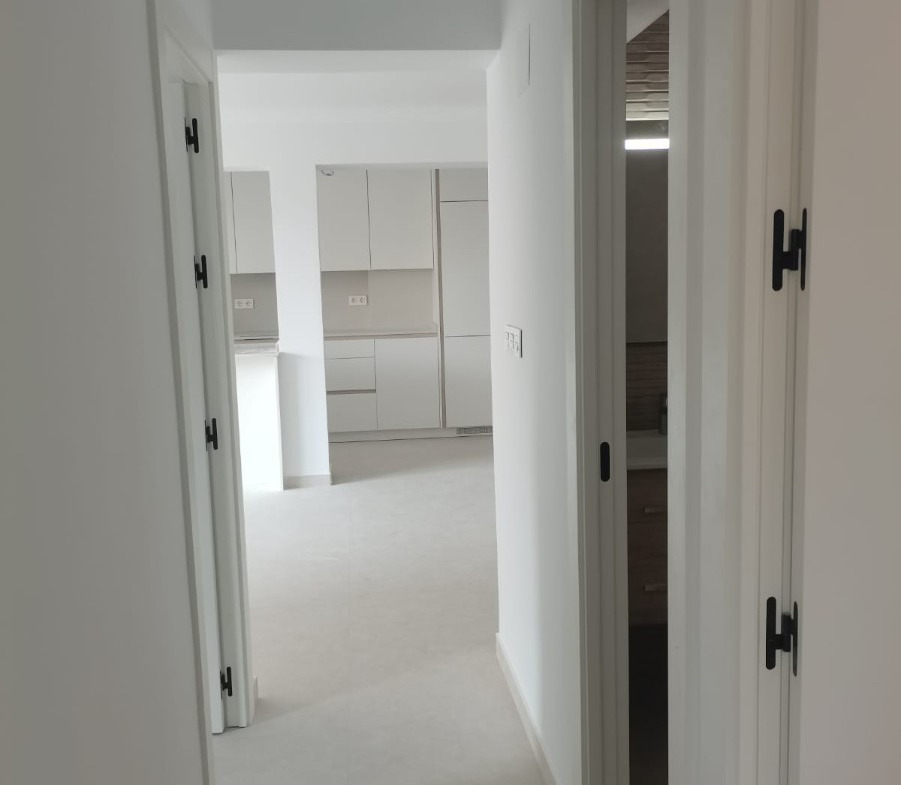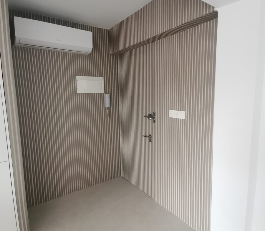 The property now features an open modern kitchen fully equipped with appliances, seamlessly integrated into the living space. The apartment has been completely renovated with new plumbing, wiring, floors, windows, and smooth white walls. There are built-in wardrobes in two bedrooms, a fully renovated bathroom with all new sanitary fixtures, and air conditioning installed for year-round comfort.