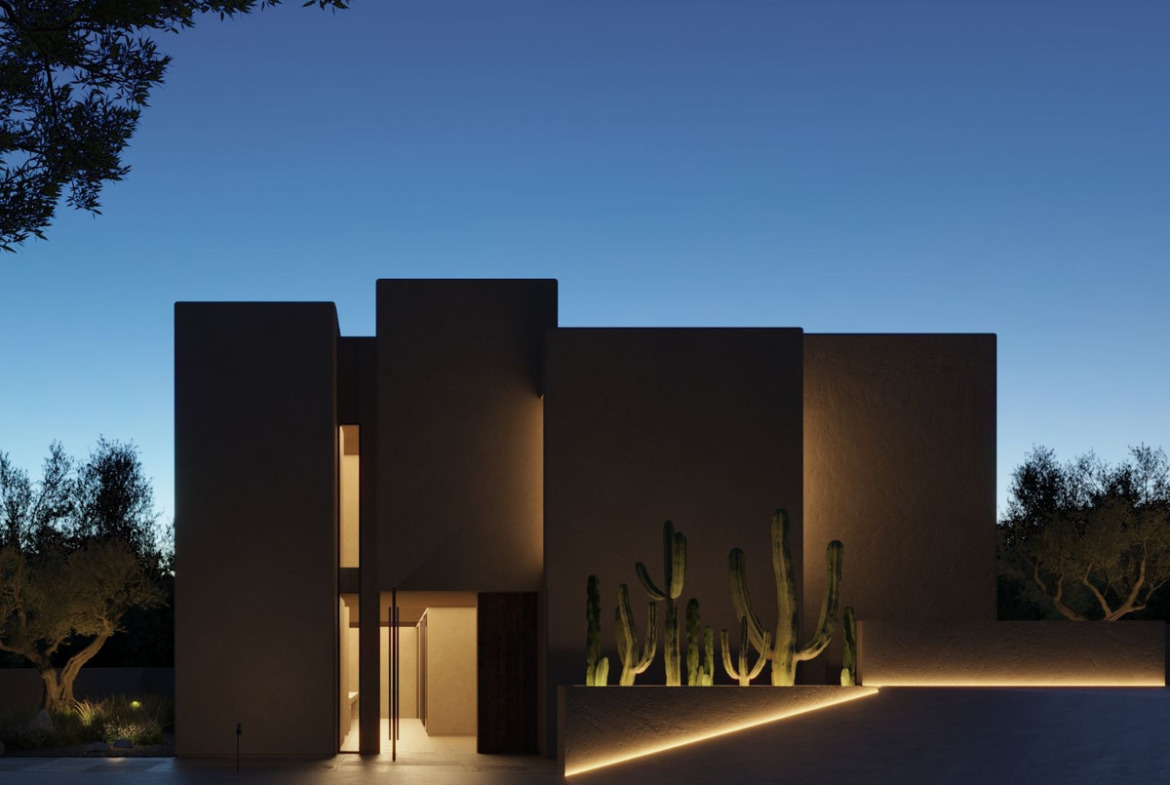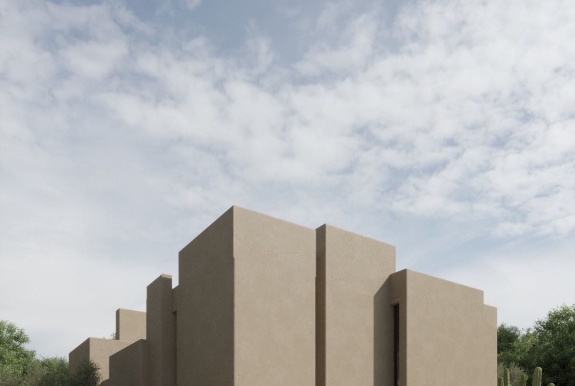 The façade of the house is made up of several cubes of different sizes and heights, which are interspersed creating an irregular geometry. These cubes are carefully arranged to achieve a modern and attractive aesthetic, while maintaining a sense of subtlety. This volumetric arrangement generates a play of light and shadows on the façade which adds depth and dynamism to this house.