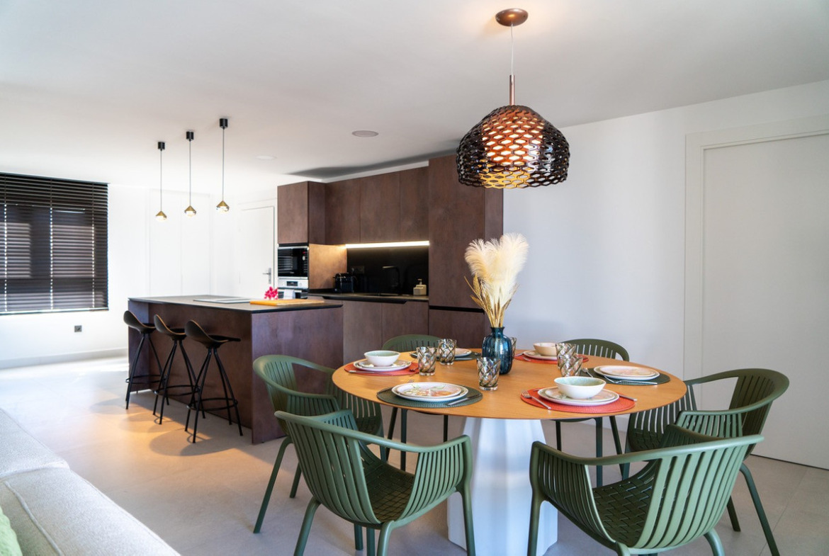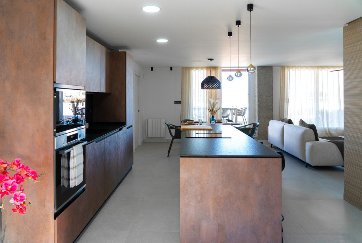 The interior stands out for its elegant and functional style: a fully equipped Italian designer kitchen with appliances, three bedrooms and three full bathrooms (one en suite), as well as ducted air conditioning and blue heat heating throughout. High-end materials , such as Schüco windows and a security door with code access , guarantee maximum quality and comfort.