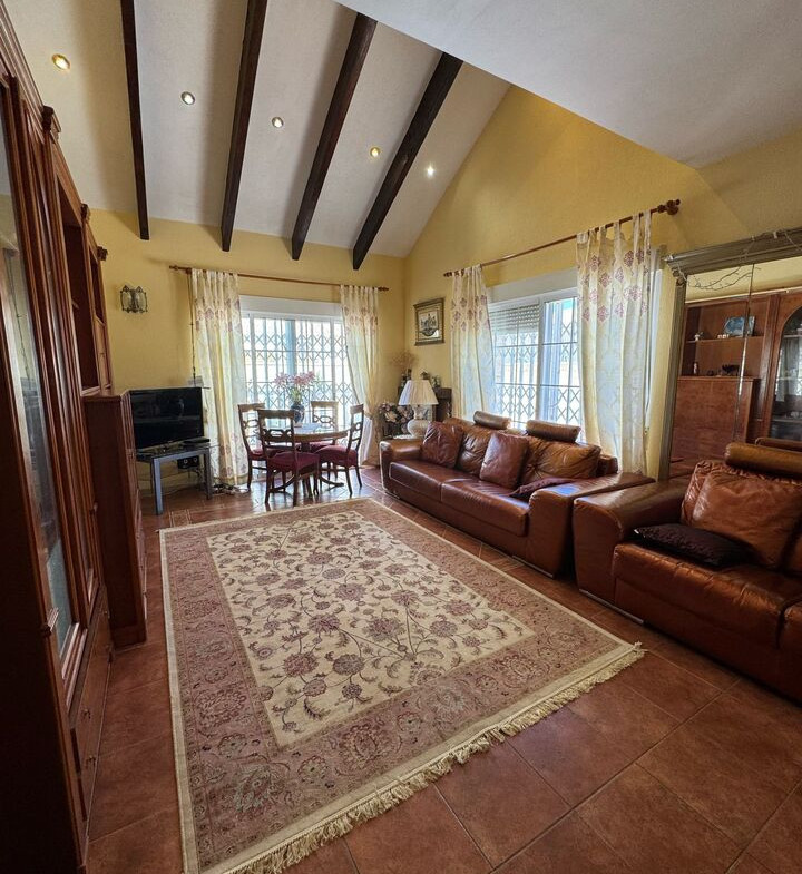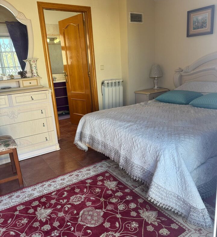 Large detached villa, Beachside of N332 in Playa Flamenca.The Villa, situated on a large plot of 467 m², offers a living area of 172 m² distributed over two floors, complemented by an underground garage with capacity for 3 cars.The property offers 4 bedrooms, two of them with en-suite bathrooms, while the other two are located on the first floor accompanied by a third bathroom, providing comfort and accessibility. The distribution includes a spacious and bright living-dining room, a large independent fitted kitchen with closed gallery, and 2 glazed terraces ideal to enjoy all year round.Outside, a private swimming pool, a barbecue area perfect for outdoor gatherings and a well-kept garden complete this exclusive environment.The house is sold furnished and there is air conditioning.Here you live only 250 m from the beach and within walking distance there are restaurants, bars and grocery stores. Nearby is the popular Zenia Boulevard shopping center with over 150 shops. For those interested in golf, there are several high-quality courses within a short drive.