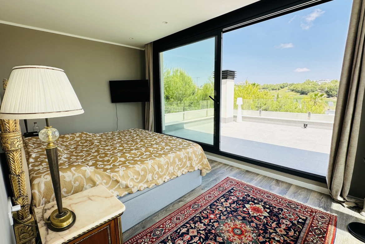 Set on a private plot with breathtaking views over the golf course, this villa features 6 generously sized bedrooms, 4 full bathrooms, and an additional guest toilet — ideal for large families or entertaining guests. The sleek, modern architecture is complemented by high-quality finishes and natural materials throughout.