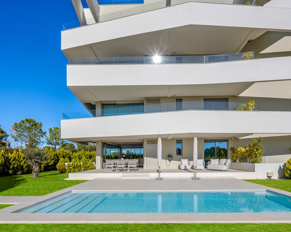 Located on the Costa Blanca's most sought-after golf resort, Las Colinas Golf & Country Club , this exceptional ground-floor corner apartment is situated within the prestigious Madroño 2 development . A unique combination of luxury, privacy, and resort amenities, surrounded by nature and golf. The apartment boasts a whopping 650 m² of land , which is exceptional for an apartment. Thanks to its corner location, you'll enjoy maximum privacy, open views, and optimal sun exposure. The private garden is a true oasis, complete with a private swimming pool , perfect for enjoying the Mediterranean climate year-round. Inside, the home boasts three full bedrooms and two stylish bathrooms , finished with high-quality materials. The open-plan living area seamlessly connects with the outdoor areas, creating a pleasant indoor-outdoor experience. The apartment is sold fully furnished and move-in ready , with attention to detail and comfort. In addition to the private pool, the project boasts exclusive communal facilities , including an infinity pool with panoramic views , a modern fitness center (gym) , and beautifully landscaped gardens. Everything has been designed to meet the highest standards of luxury living. Furthermore, an underground parking space and private storage room are included, as well as a lift that provides direct and comfortable access to the house. Assets in a row: Ground floor corner apartment 650 m² of private land Private pool + communal pool & infinity pool 3 bedrooms, 2 bathrooms Fully furnished Underground parking space & storage Elevator available Located in Las Colinas Golf & Country Club Project: Madroño 2 This apartment is ideal as a luxurious second home , permanent residence or high-quality investment in an absolute prime location on the Costa Blanca.