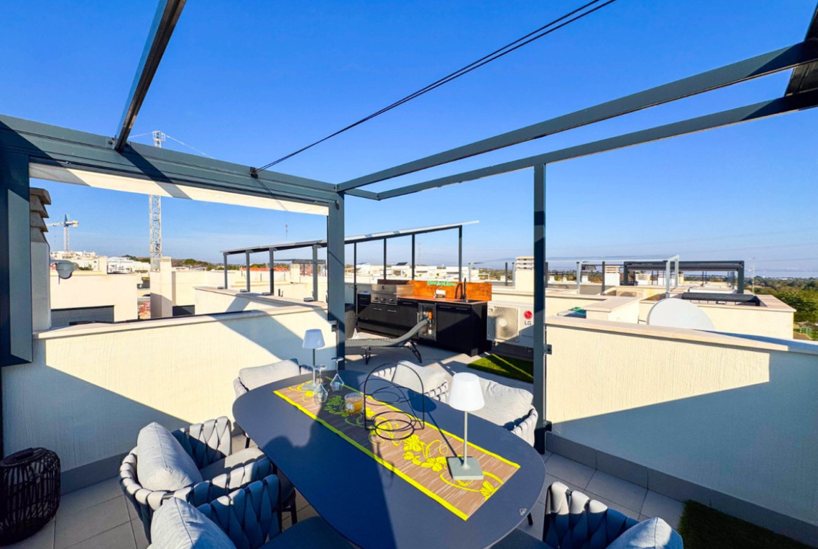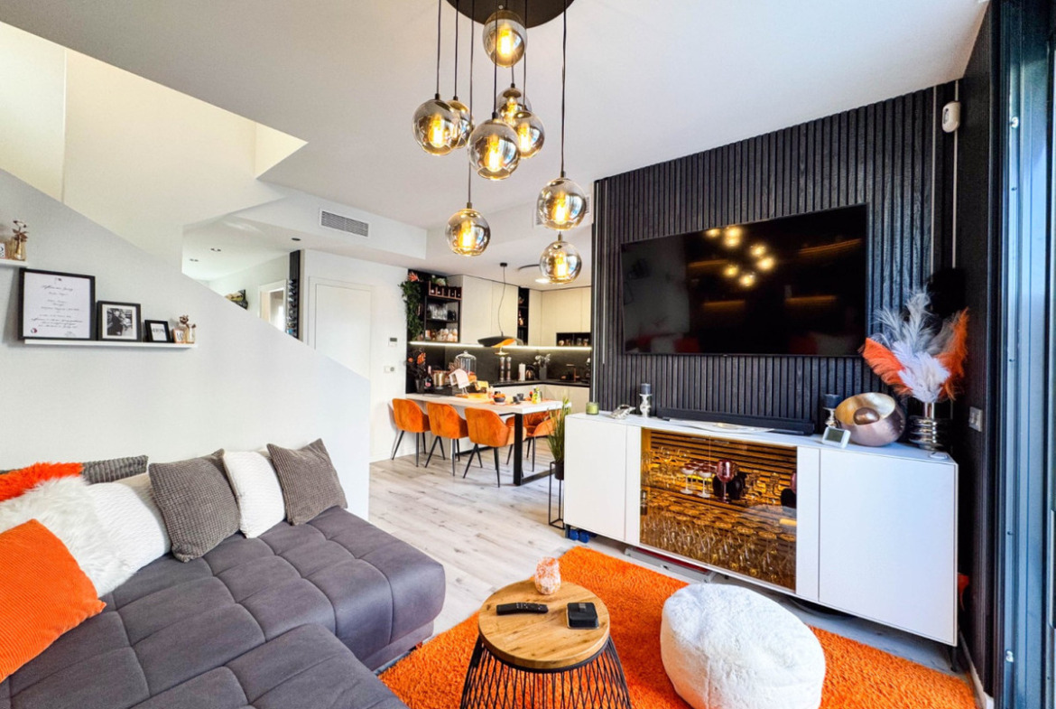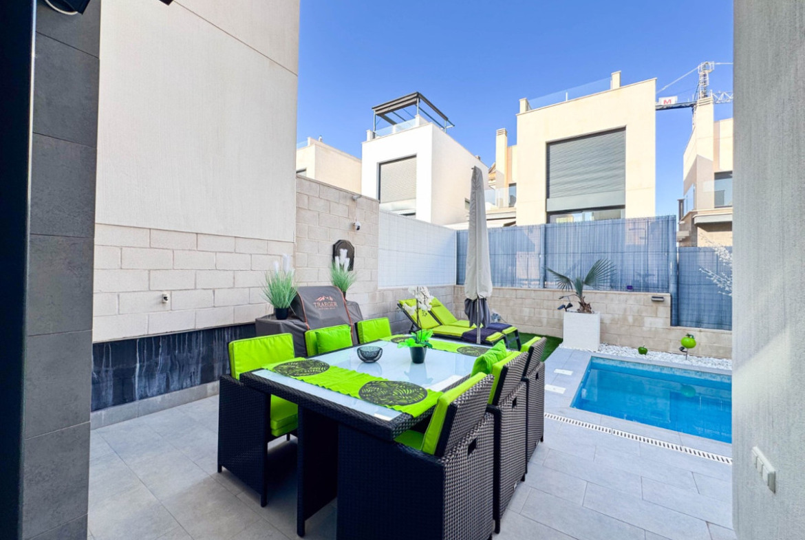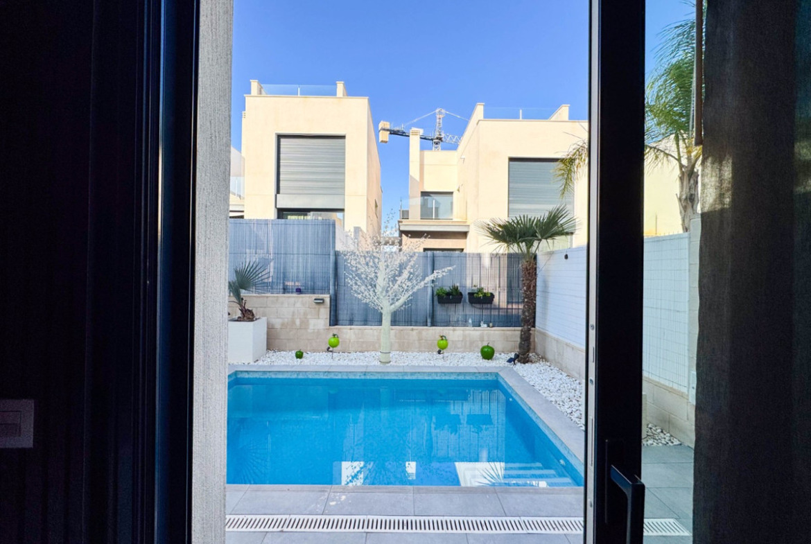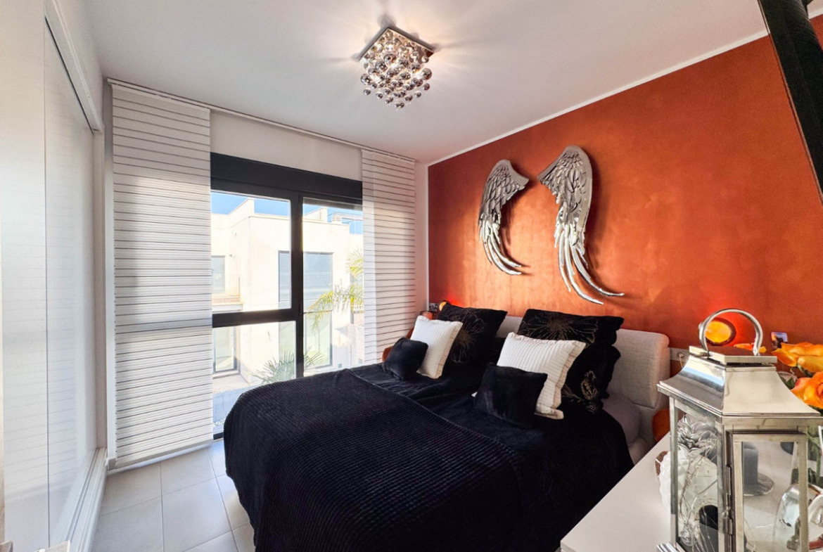 We present this spectacular 2-storey independent house with a private solarium, located in the exclusive and quiet PAU 26 area of Orihuela Costa, in the Residencial Entregolf urbanization. A modern and recently built home (2020), ideal for those seeking comfort, quality and proximity to all services. With 103 m² built on a 142 m² plot, this property stands out for its top quality finishes and its spacious spaces, designed for your comfort.