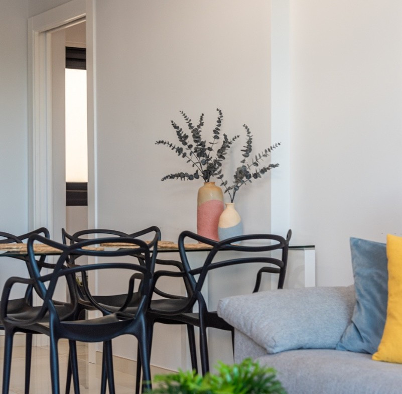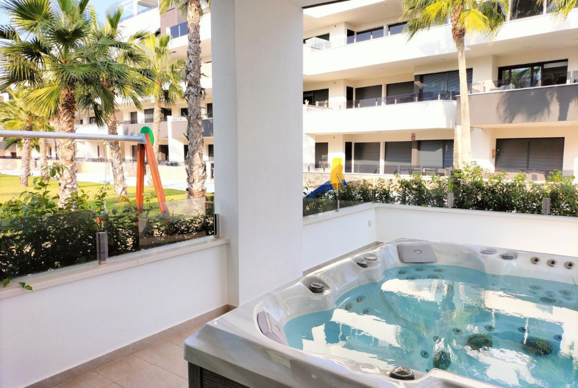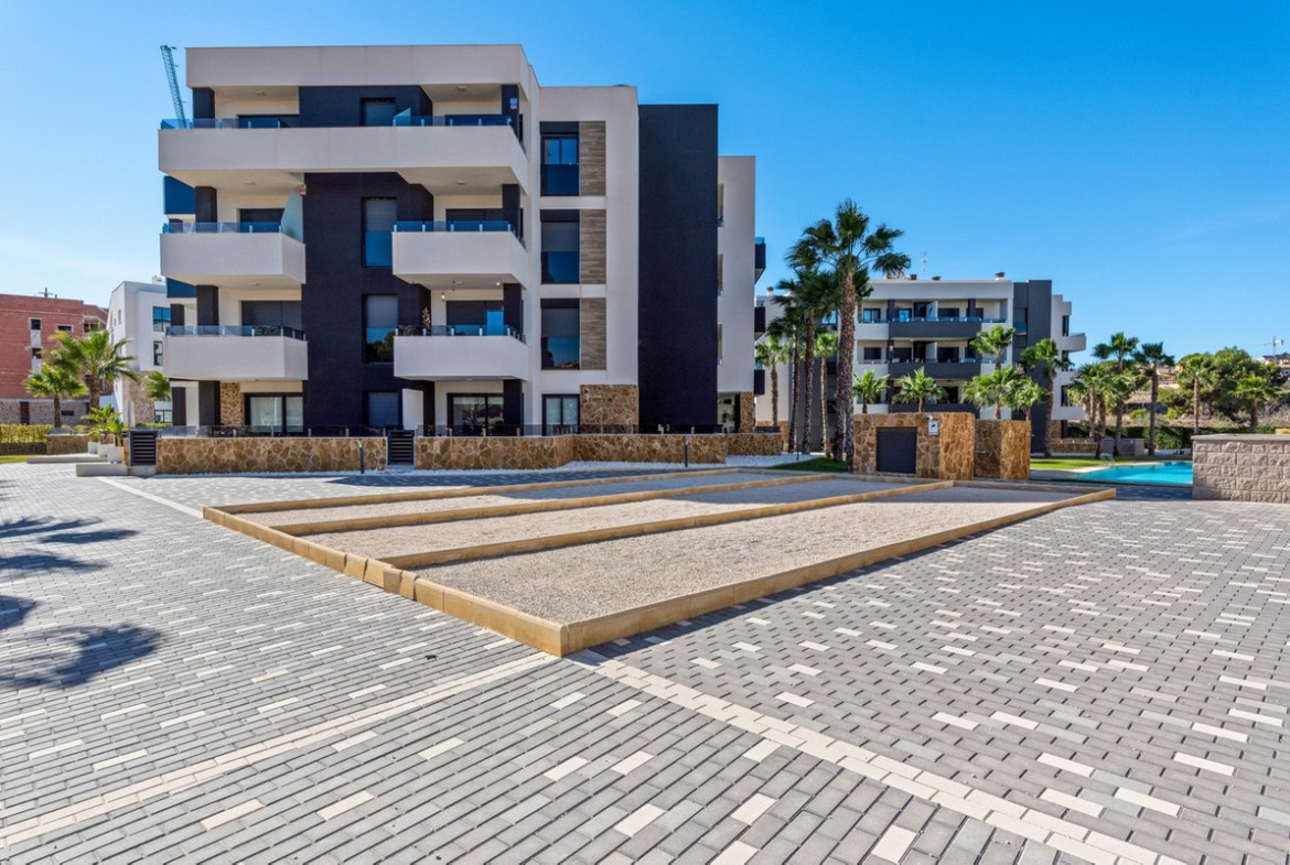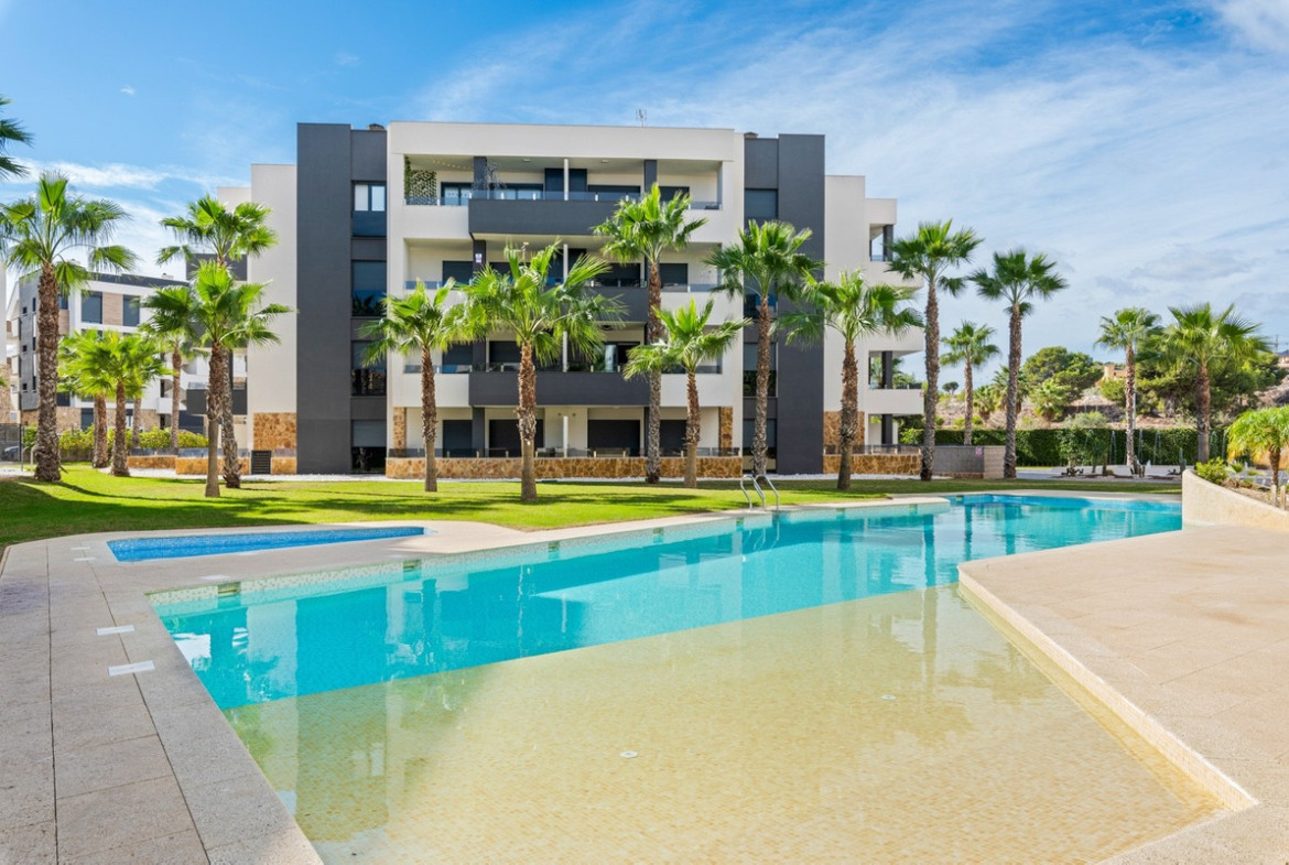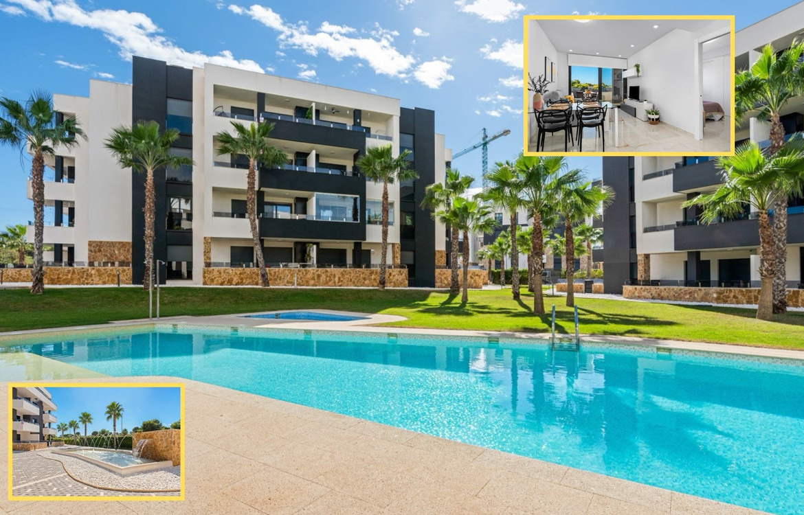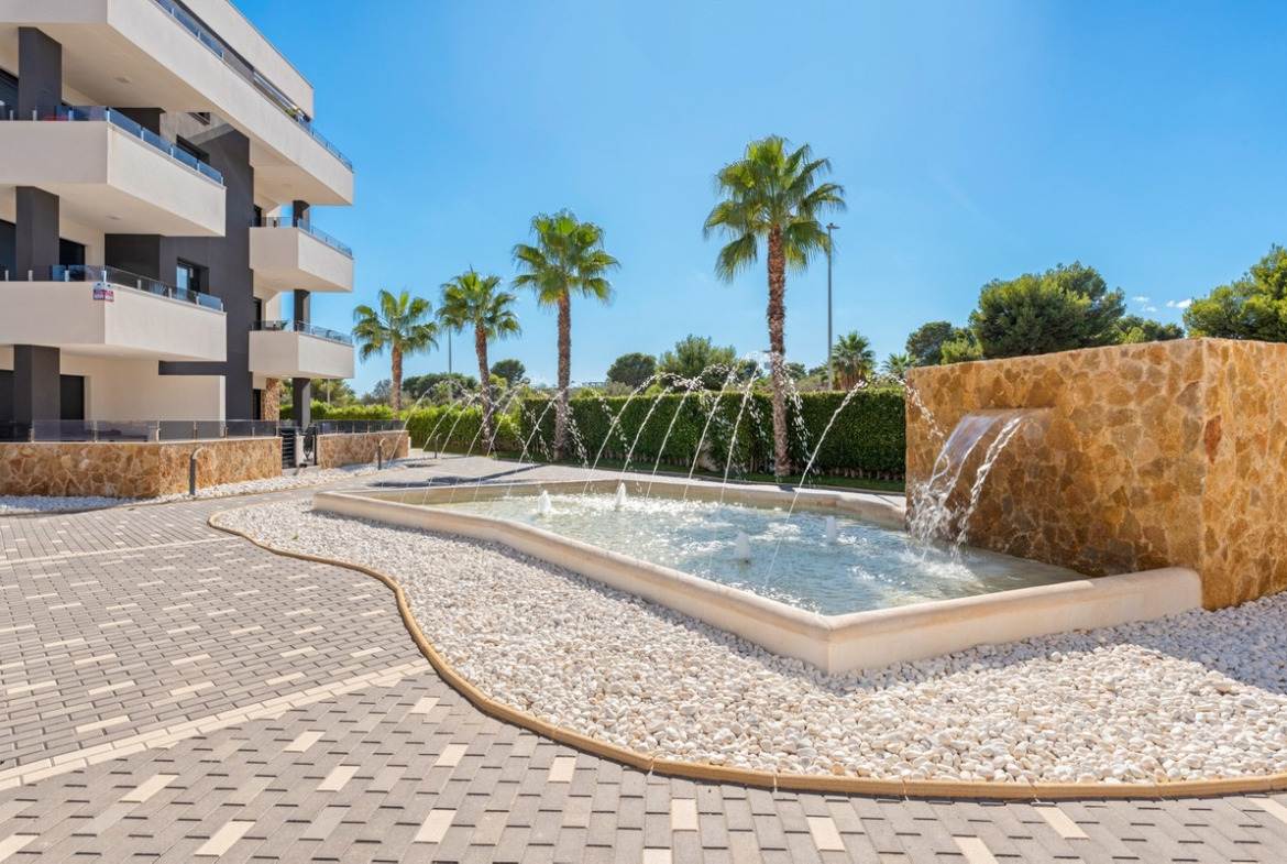 We present to you a beautiful and new 2 bedroom apartment in the popular Amanecer VI gated complex in Los Altos. The property with southwest exposure, located on the second floor with elevator, equipped with high quality furniture, modern household appliances, air conditioning and underground parking with storage room.The apartment consists of a bright living room with dining area, open kitchen and two double bedrooms with built-in wardrobes. The master bedroom has an en suite bathroom and both bathrooms have underfloor heating. The balcony overlooking the communal pool and garden invites you to relax outdoors.Residencial Amanecer VI offers a safe and quiet environment with large green areas, boules courts and water attractions.  Ideally located 750 m from a supermarket and a few minutes walk from the restaurants and bars of Via Park III, just a 10 minute drive from the beaches, Zenia Boulevard and world class golf courses such as Villamartin and Las Ramblas.Ready to move in!