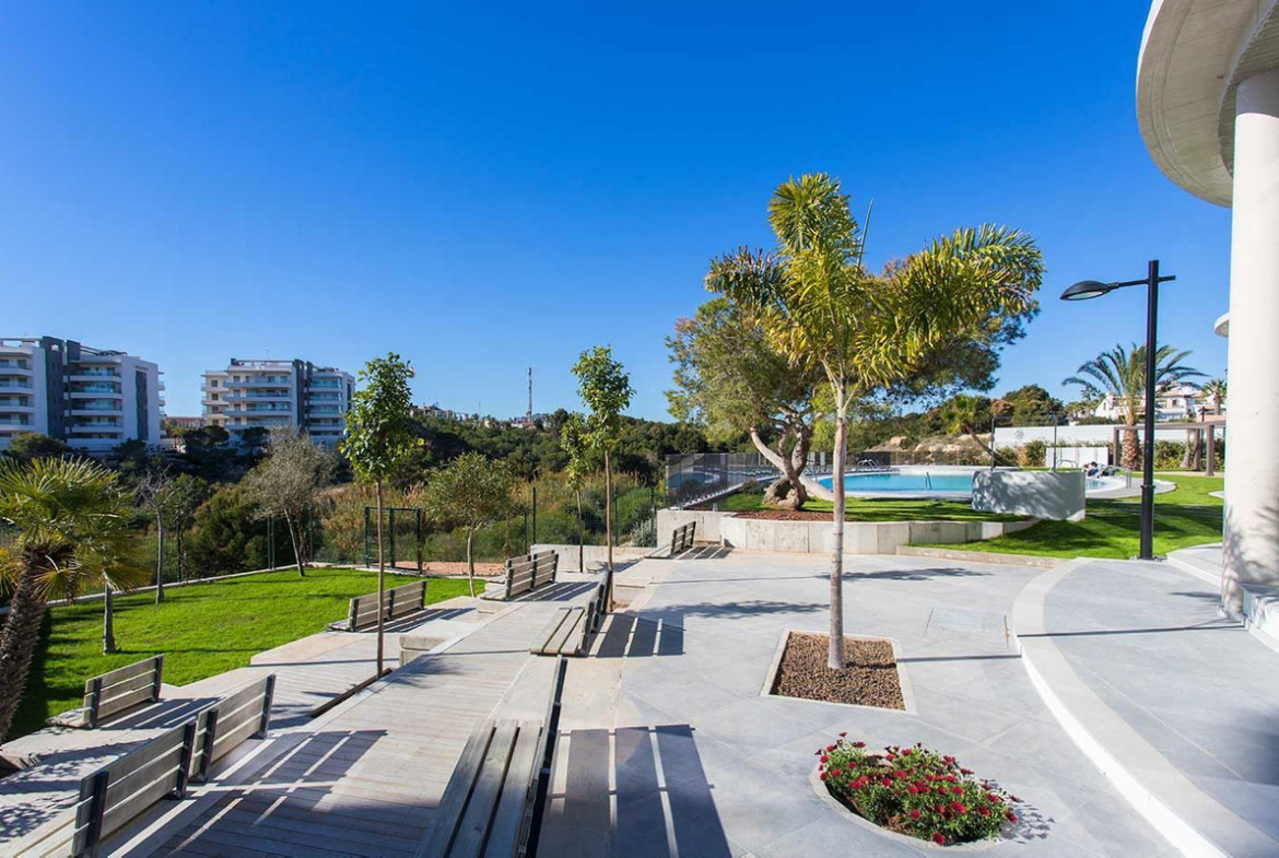 Close to several well-known golf courses, the large shopping center La Zenia Boulevard with a wide range of shops and restaurants, and about three kilometers from the Mediterranean Sea and beautiful beaches.