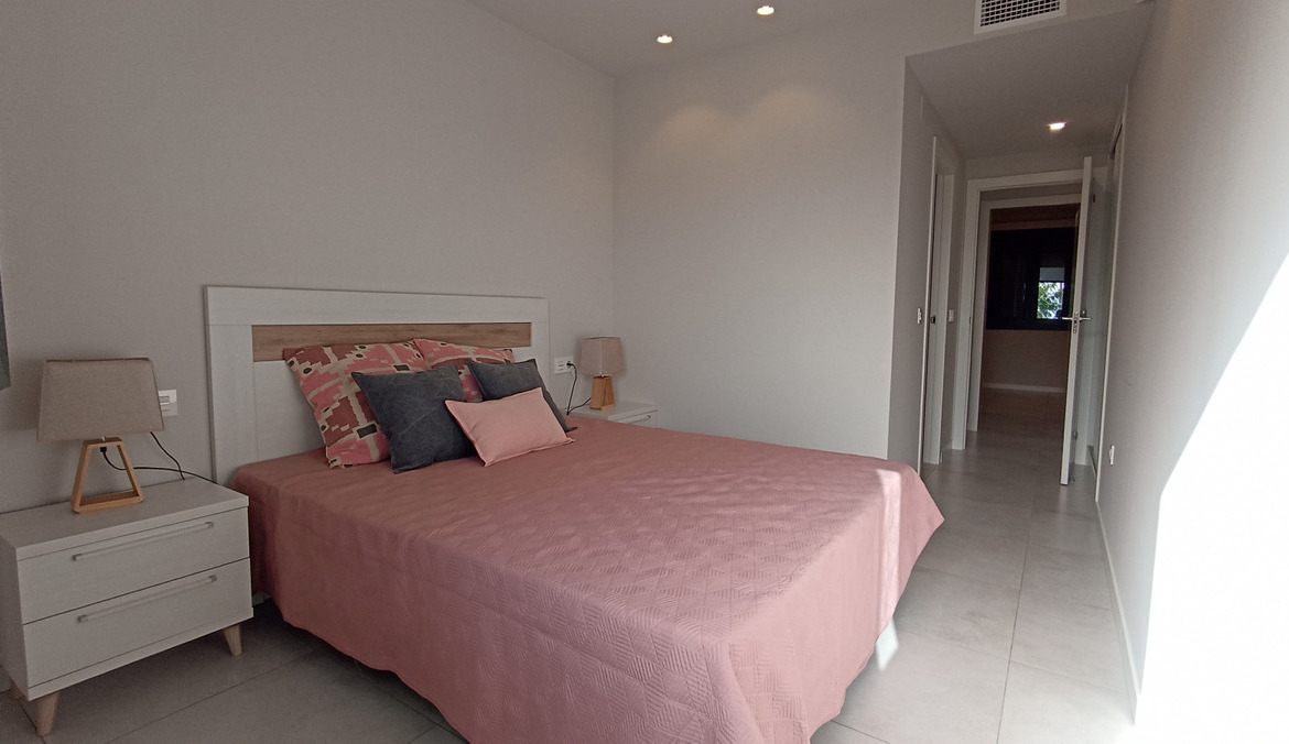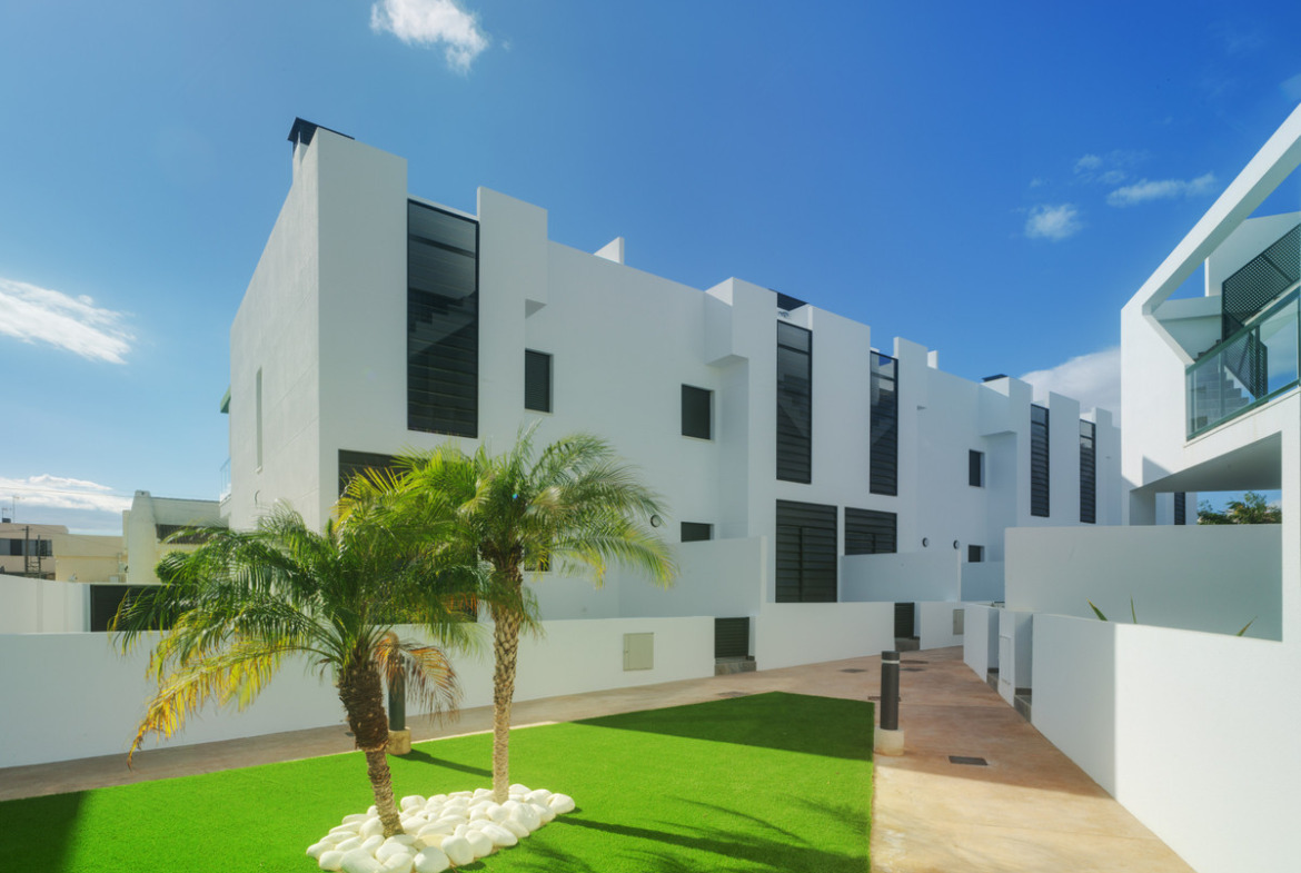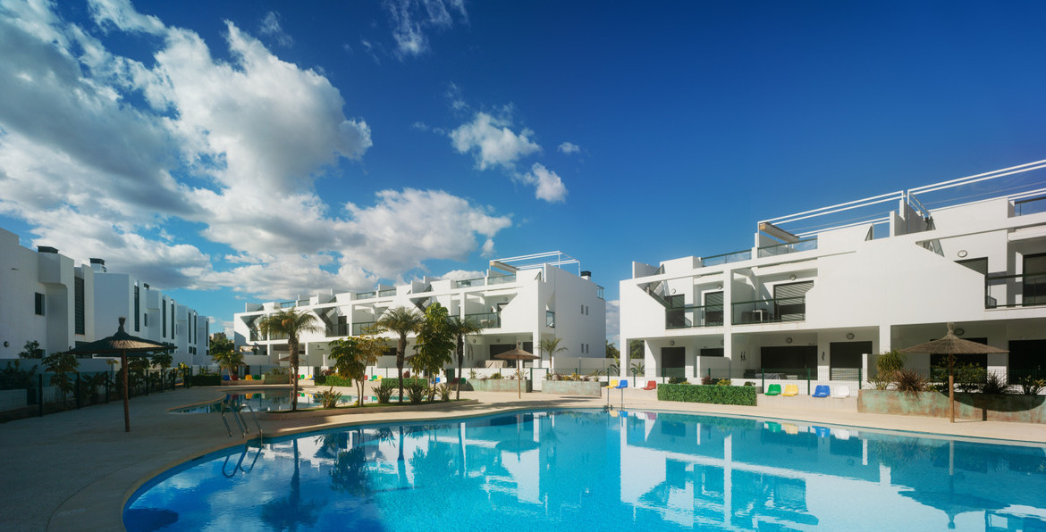Located in the modern residential complex in Mil Palmeras, just 600 meters from the Mediterranean Sea, these bungalows are part of a private gated community with parking, landscaped gardens, and communal swimming pools for adults and children.