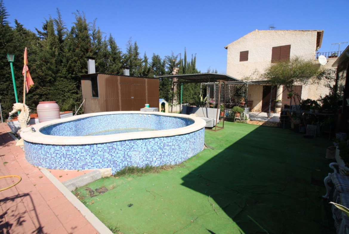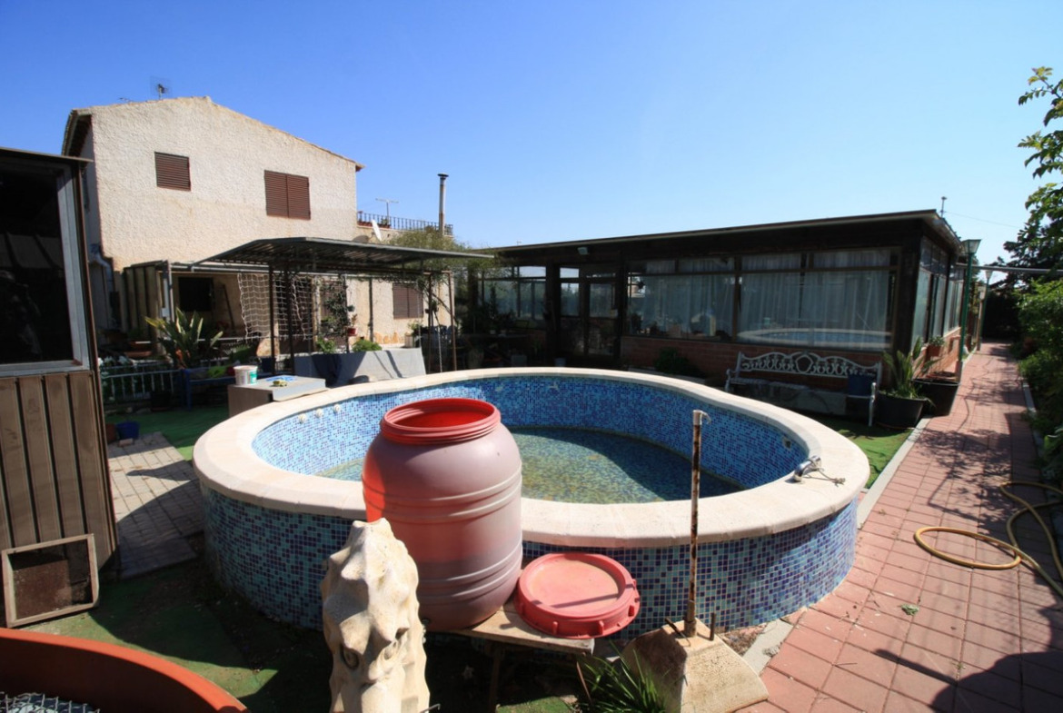 We offer this spectacular farm in Lomas de Don Juan for sale, less than 3 kilometers from the beaches of Campoamor and next to the golf courses. The farm, fully fenced, has an area of 3,500 square meters in which the main house is located, of 106 m2 built, distributed over two floors. On the ground floor is the huge living room with a dining area, a wood burning fireplace, the separate kitchen and a bathroom with a shower. On the upper floor we have 2 bedrooms with access to a large terrace, and another bathroom with a shower. The farm also has another independent construction, 106 square meters, stables for horses, chicken coop, hutches, fish pond, barbecue area and gazebo, parking for several cars, greenhouse and of course, swimming pool. In short, it is a dream estate where you can live and enjoy the tranquility of the countryside, the sea and the fantastic Mediterranean climate.