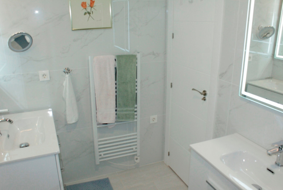 We are delighted to offer for sale this superb 100m2 south-west facing Bungalow Buhardilla in the very sought after urbanisation of VILLAMARTIN Pau-8. The property is situated in a gated urbanisation and offers 3 bedrooms, 2 bathrooms with 68m4 front and rear gardens. Entering through the 8m2 sunny terrace the property distributes as; spacious open plan lounge, dining area and fully equipped kitchen, complete with an adjacent utility/storage area. On this level you have two double-sized bedrooms with fitted wardrobes and a bathroom with shower, one of the bedrooms has patio doors leading out to the rear 14m2 garden. To the first floor you find a further double bedroom with ensuite bathroom with 2 wash basins and shower, a large storage room and patio doors leading out to the sunny 27m2 solarium with lovely open green area and pool views. This lovely property is sold unfurnished and has air-conditioning and internet. The wonderful gated community is very well maintained and gives peace of mind. It has 1 large communal swimming pool, nice communal gardens, parking in front of the house and is only 10 min walking distance to the famous Villamartin Plaza, Golf Course and supermarket, within 5 min drive you find the largest shopping centre in the Alicante region, Zenia Boulevard with over 150 shops, bars and restaurants. The white sandy beaches of Orihuela Costa are only 3 km away and 45 mins drive from both Alicante and Murcia Corvera Airports. This lovely property will not be on the market long, so early viewing is advised to avoid disappointment. MUST BE SEEN !!
