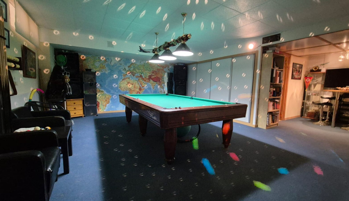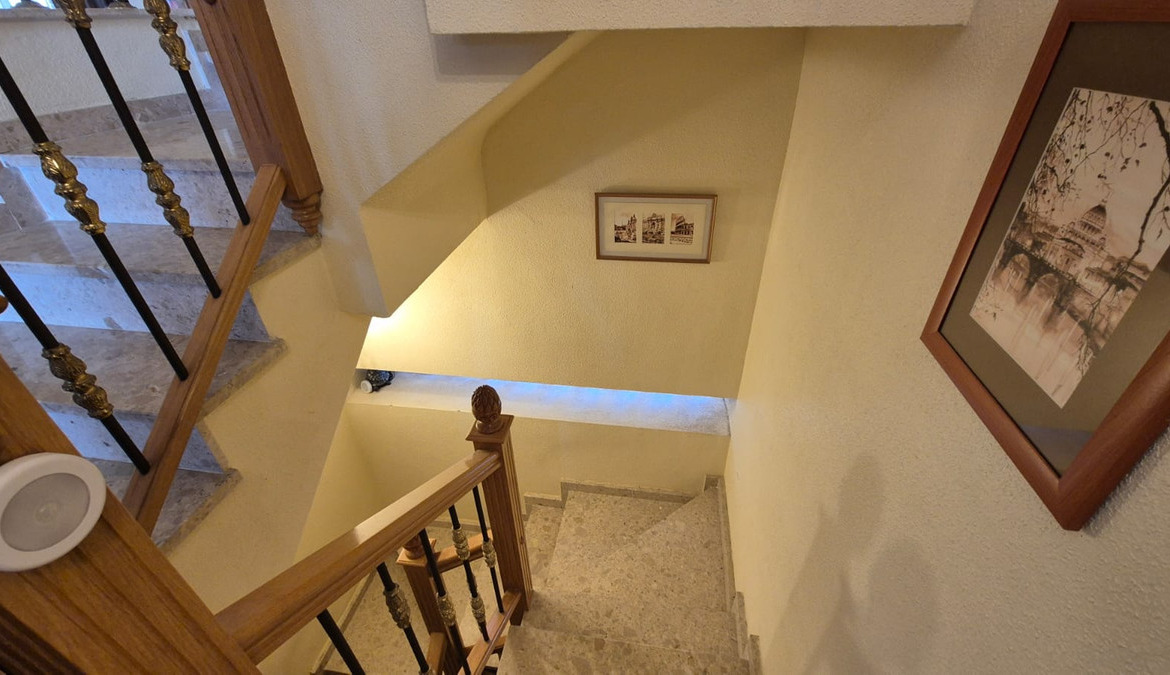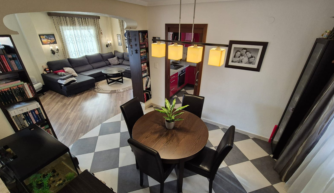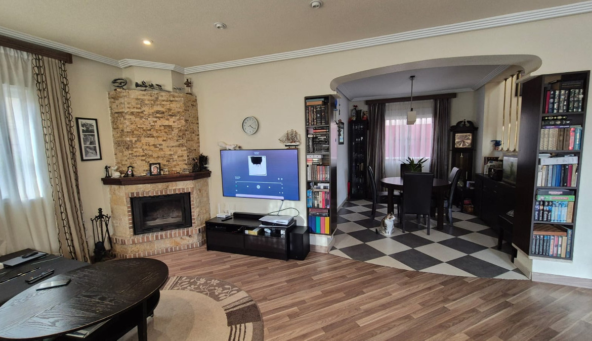 This large 195m2 house has on ground floor an independent kitchen open living and dining room with fire place, and 1 bathroom. On the upper floor there is 3 large bedrooms, sun terrace and 1 family bathroom. Downstairs basement has a pool table bar and storage space for all the family to have fun.