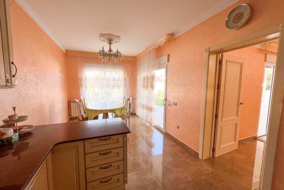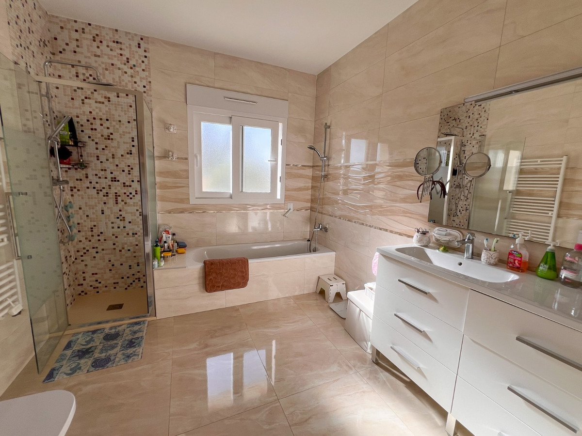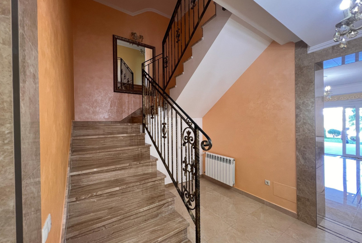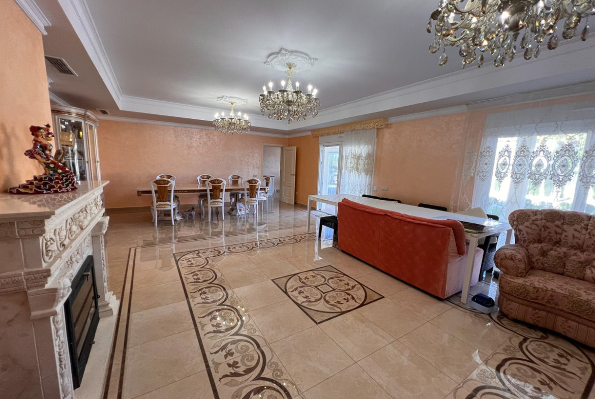 Located on one of Cabo Roig 's most prestigious avenues, this sophisticated luxury villa enjoys a privileged proximity to the sea , in an exclusive residential setting surrounded by manicured gardens and high-end villas. The property sits on a private plot of 1,313 m² and boasts 511 m² of living space . Distributed over two floors , it is complemented by a rooftop solarium with panoramic views , ideal for enjoying the Mediterranean climate year-round. In total, it features 11 bedrooms and 8 bathrooms , organized into spacious suites and separate rooms , some with en-suite bathrooms and others with shared bathrooms , designed to offer maximum comfort to both a large family and guests. Each bedroom also has its own separate dressing room , providing functionality and organization. The villa offers an elegant living-dining room with a fireplace , several versatile rooms, two kitchens , and a large porch with pleasant garden views. The exterior is complemented by a private swimming pool and a meticulously maintained natural garden. Within the garden itself is a completely independent outbuilding , equipped with bathrooms , which can be used for additional guest accommodation or for domestic or service purposes .