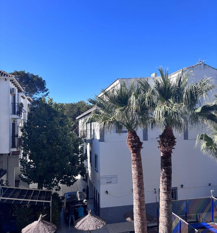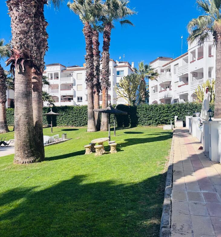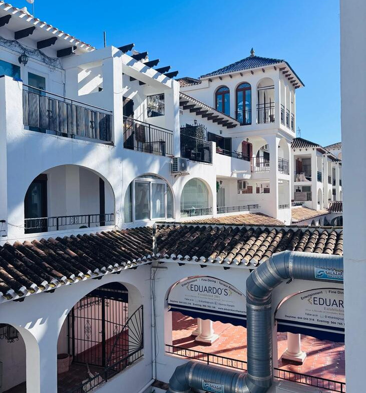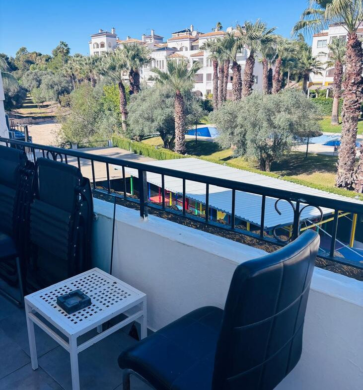 The apartment has been recently upgraded to a high standard, combining comfort and style. The open-plan living and dining area opens onto a sunny terrace with beautiful pool views, creating a seamless space for outdoor living. The contemporary kitchen is fully equipped, with two generous double bedrooms. A sleek, modern bathroom