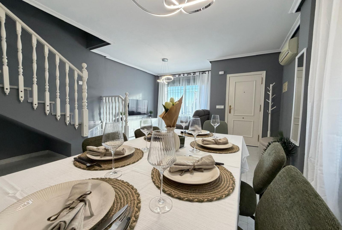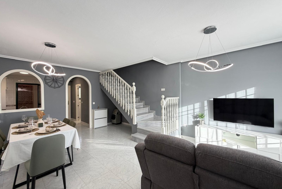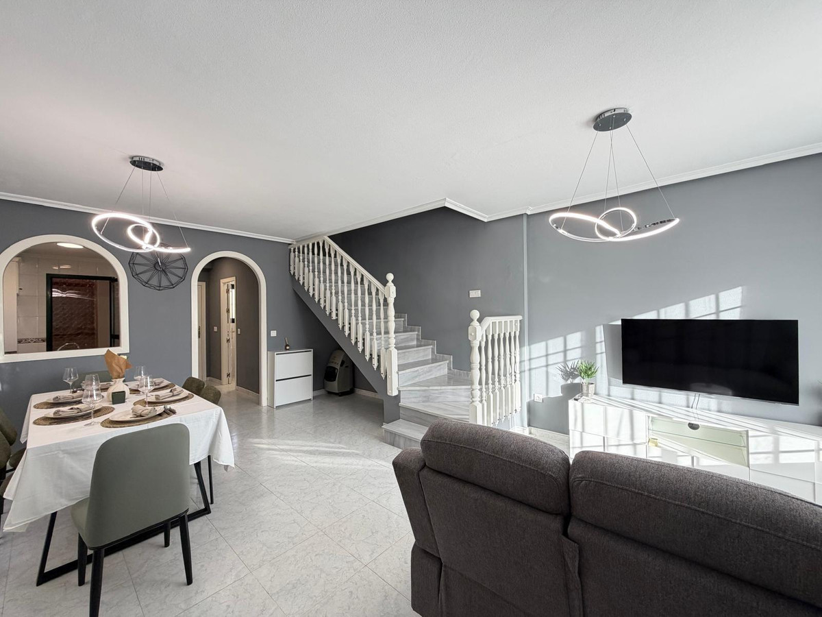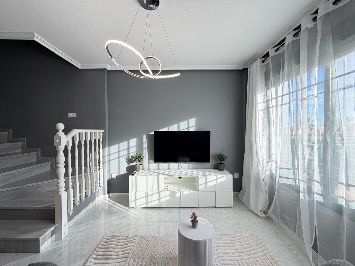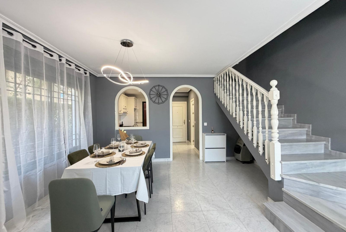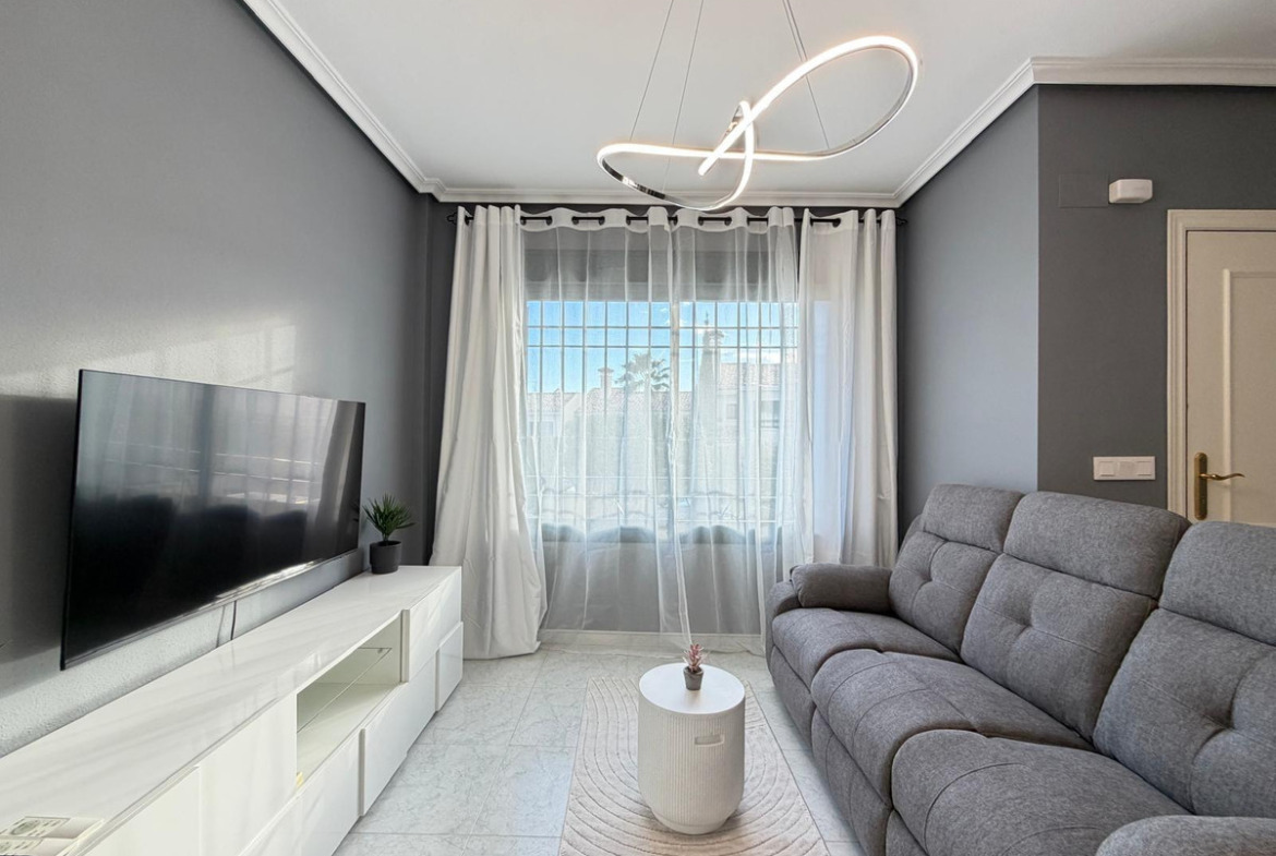 Townhouse for sale in one of the best and most sought-after areas of Orihuela Costa, Alicante province, Spain.The property has been renovated, with a total area of 85 m², and includes:• 2 bedrooms• 2 bathrooms• air conditioning• sold fully furnished• with appliances and decorative elements included(all as shown in the photographs)The property also features:• 2 private plots with a total area of 25 m²• private solarium of 20 m² with sea viewsLocated in the well-maintained residential complex Lomas de Campoamor, built in 2003.About the Lomas de Campoamor complexQuiet and well-maintained residential complex, with large green areas and common spaces.It has a community pool, relaxation areas, and internal walkways.Close to golf courses, supermarkets, restaurants, and all necessary services.The beaches of Orihuela Costa are just a few minutes' drive away.???? Ideal as:• main residence• second residence• investment for rental