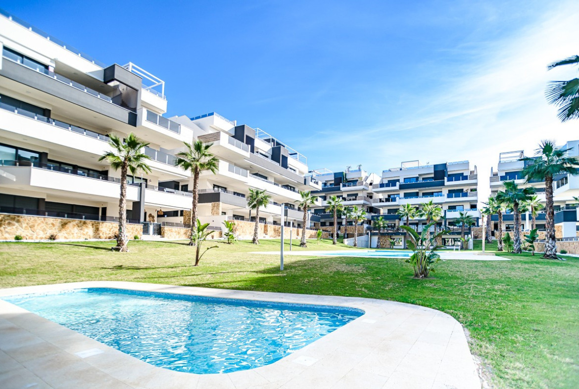 This practically new penthouse in Orihuela Costa combines modern comfort with a prime location on the Costa Blanca . The property features two bedrooms and spacious terraces, spread across several blocks within a gated community with swimming pools for adults and children and beautifully landscaped green areas.