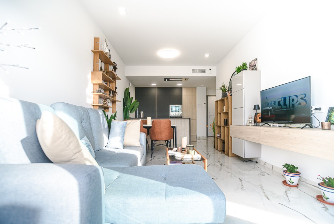 The location is exceptionally convenient: within walking distance of amenities and just 3 km from the beaches of Torrevieja and Orihuela Costa. Golf enthusiasts can reach the Villamartín courses within 7 km. The Zenia Boulevard shopping center is 9 km away. Alicante (50 km) and Murcia Corvera (55 km) airports offer easy international connections.