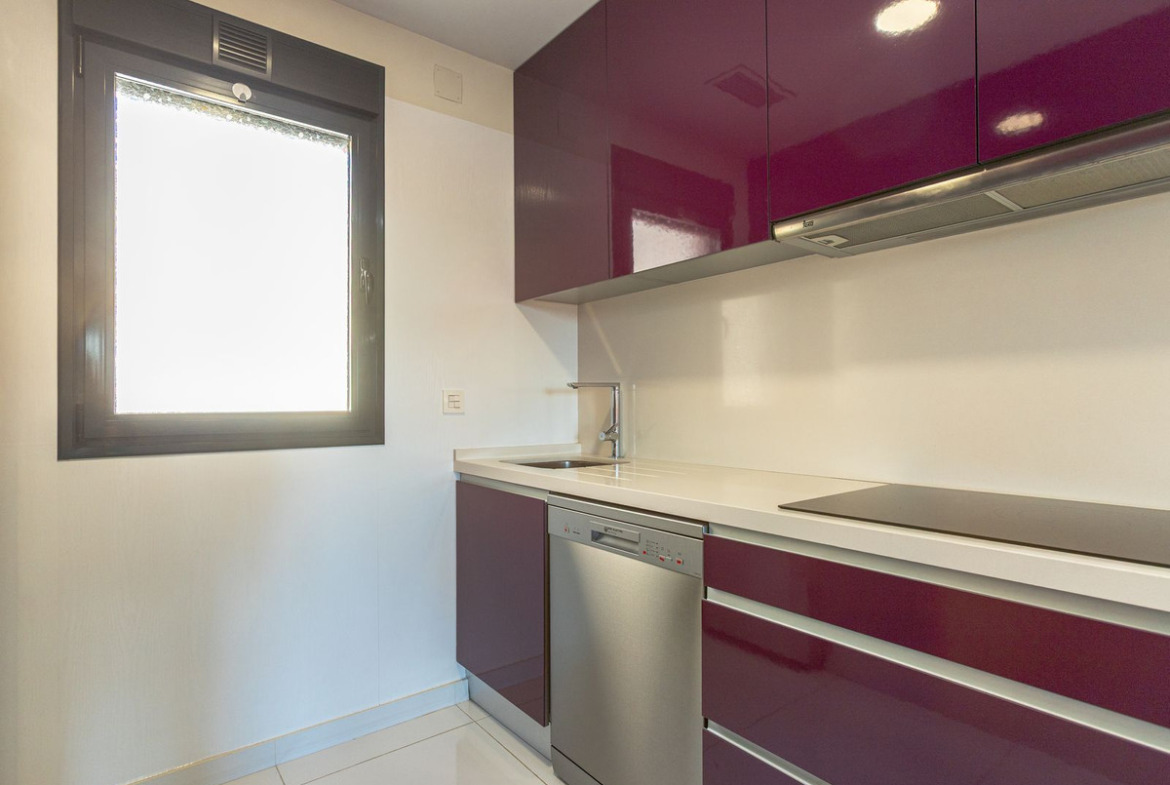 From the front door you enter the spacious living room, which is connected to the dining area and at the back is a well-equipped kitchen. The master bedroom has its own en-suite bathroom, while the second bathroom serves the second bedroom. Both the living room and the master bedroom have patio doors to a south-facing balcony, from which external stairs lead to the roof terrace. The roof terrace offers expansive views of the mountains and the surrounding area. You can open the roof terrace awning and create a sheltered space to enjoy the Mediterranean climate.