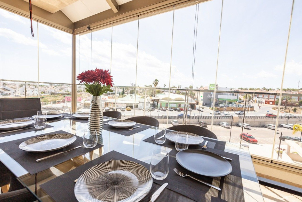 Experience luxurious coastal living in this stunning penthouse apartment for sale in the sought-after area of Villamartin. Actually it was two apartments which have been converted into one massive penthouse. Boasting 4 spacious bedrooms and 2 modern bathrooms, another laundry room which has a toilet also, one of which is an en-suite, this property is perfect for a family or those who love to entertain guests. The big open-plan living room and dining area lead seamlessly into the massive kitchen, which is a chef`s dream come true.Step out onto the glazed-in balcony and be captivated by the breathtaking sea views. Take your relaxation to the next level with the rooftop solarium complete with storage, an outside shower, and even more fabulous sea views.This property is sold fully furnished, including white goods, so all you need to do is pack your bags and move in. The price includes two open parking spaces for your convenience. The community offers an outside pool open all year round, an indoor pool, a gym, and a sauna so that you can stay active and healthy all year round. The landscape is beautifully maintained with nice trees and flowers, providing a serene and relaxing atmosphere.Located in Villamartin, this penthouse apartment is conveniently close to supermarkets and bars, with a short 3-minute drive to the Villamartin Plaza. Enjoy the Mediterranean beach of La Zenia just a short drive away (2.9 km). Don`t miss out on this rare opportunity to own a luxurious penthouse apartment in one of the most sought-after coastal areas. Contact us today for a viewing.