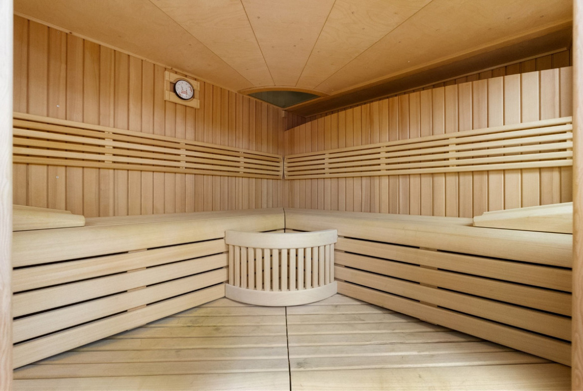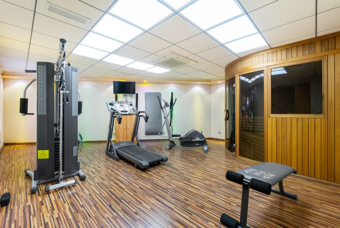 In the basement there is a gym with a Finnish sauna, with aromatherapy and chromotherapy