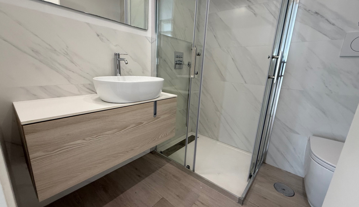 Ground floor: bright living room, fully fitted kitchen, one bedroom, and a bathroom.