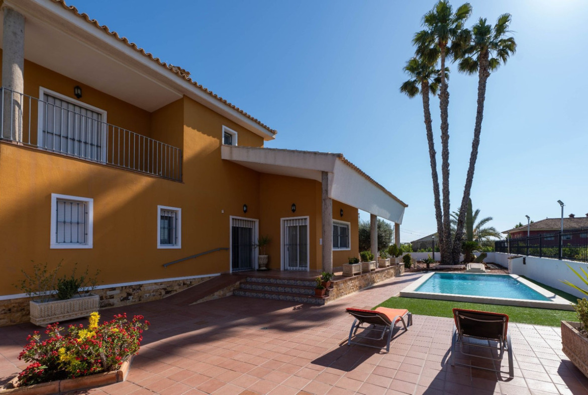 Exclusive villa in Orihuela with private plot and agricultural profitabilityIn the heart of the Costa Blanca lies this magnificent property, a villa that perfectly combines elegance, spaciousness, and interesting investment potential.With a constructed area of 495 m² spread over three floors, the house is integrated into a 1,000 m² private residential area with a pool and barbecue area, within a fully fenced 9,480 m² estate that guarantees maximum privacy.One of its greatest attractions is its agricultural production of Verna lemons, with traditional irrigation, which provides an approximate annual income of between €15,000 and €20,000, making the property a solid investment that combines the charm of the countryside with profitability.The villa offers spacious and bright spaces designed for comfort. The basement includes a large garage with capacity for several vehicles, a gym with a shower, a leisure and DIY area, and a spare room with a dressing room and shoe rack.The ground floor houses an elegant living room, a fully equipped separate kitchen with a pantry and laundry room, a bedroom with a built-in wardrobe, a bathroom with a shower, and an office with access to the terrace.On the first floor, the master bedroom has a private balcony, a dressing room, and an en-suite bathroom with a whirlpool tub, along with two additional bedrooms and a second full bathroom.The property is equipped with all modern amenities: ducted air conditioning, central heating with water radiators, fiber optics, grilles, and mosquito nets on all windows. Outside, the private pool, illuminated gardens, and an outbuilding with a barbecue, oven, and sink are perfect for outdoor gatherings. An additional shed houses the air conditioning system, the boiler, and the fuel tank. Both the main entrance and the garage access have motorized systems for added convenience.Its location is unbeatable: just 5 minutes from the town centers of Orihuela and Bigastro, and 5 kilometers from the Ociopía shopping center, surrounded by high-end homes and with easy access to supermarkets, restaurants, and all necessary services. It is just 30 minutes from the beach.In short, this is a unique property on the Costa Blanca, offering an exclusive lifestyle, surrounded by nature and tranquility, with the added value of a profitable investment.We have a large portfolio of properties in the Costa Blanca and Costa Calida areas, specialising in country properties, villas, fincas, building plots and design and build options in the Alicante and Murcia regions with a particular emphasis on Elda, Monovar, Pinoso, Sax, Villena, Aspe, Fortuna, Albacete and many more surrounding areas. We have been established since 2004 and have decades of experience between the team which we bring to bear to help you find and secure your new dream home. We help you every step of the way to make sure your purchase in Spain is safe and hassle free. We are not here to sell you a property, we are here to help you realise your dream and find what is right for you. With us you are in the safest hands. Contact us now to have a no obligation chat about how you too can realise your dreams.