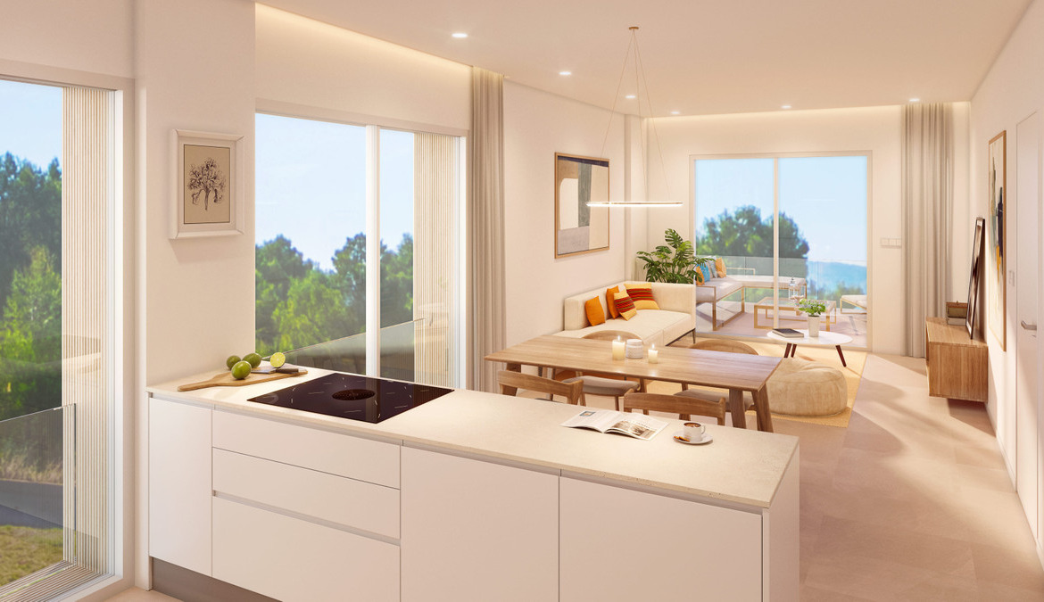 The kitchen is delivered fully furnished, leaving enough space for you to choose the appliances according to your preferences.