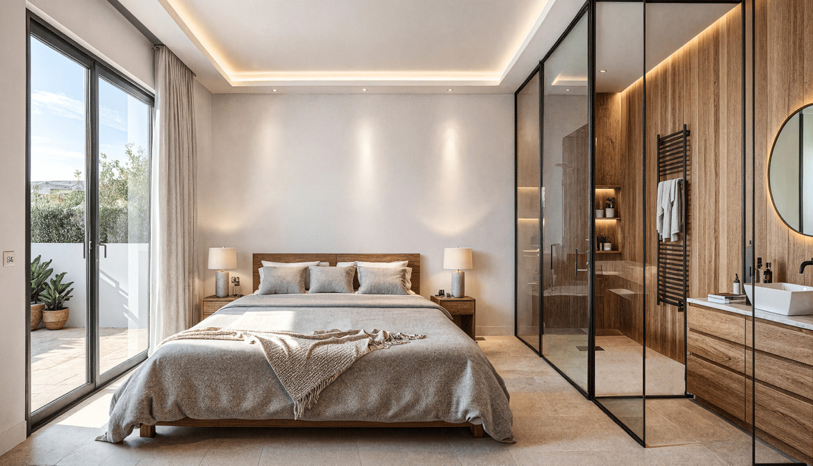 Designed for modern Mediterranean living, each residence features three bedrooms, bright open-plan interiors, and a private swimming pool, creating a seamless indoor-outdoor lifestyle ideal for both holidays and year-round living. Generous terraces extend the living space outdoors, while select ground-floor homes offer additional garden areas and penthouses include private solariums perfect for relaxing or entertaining.