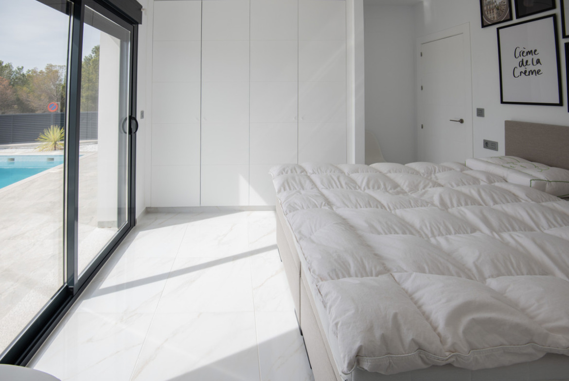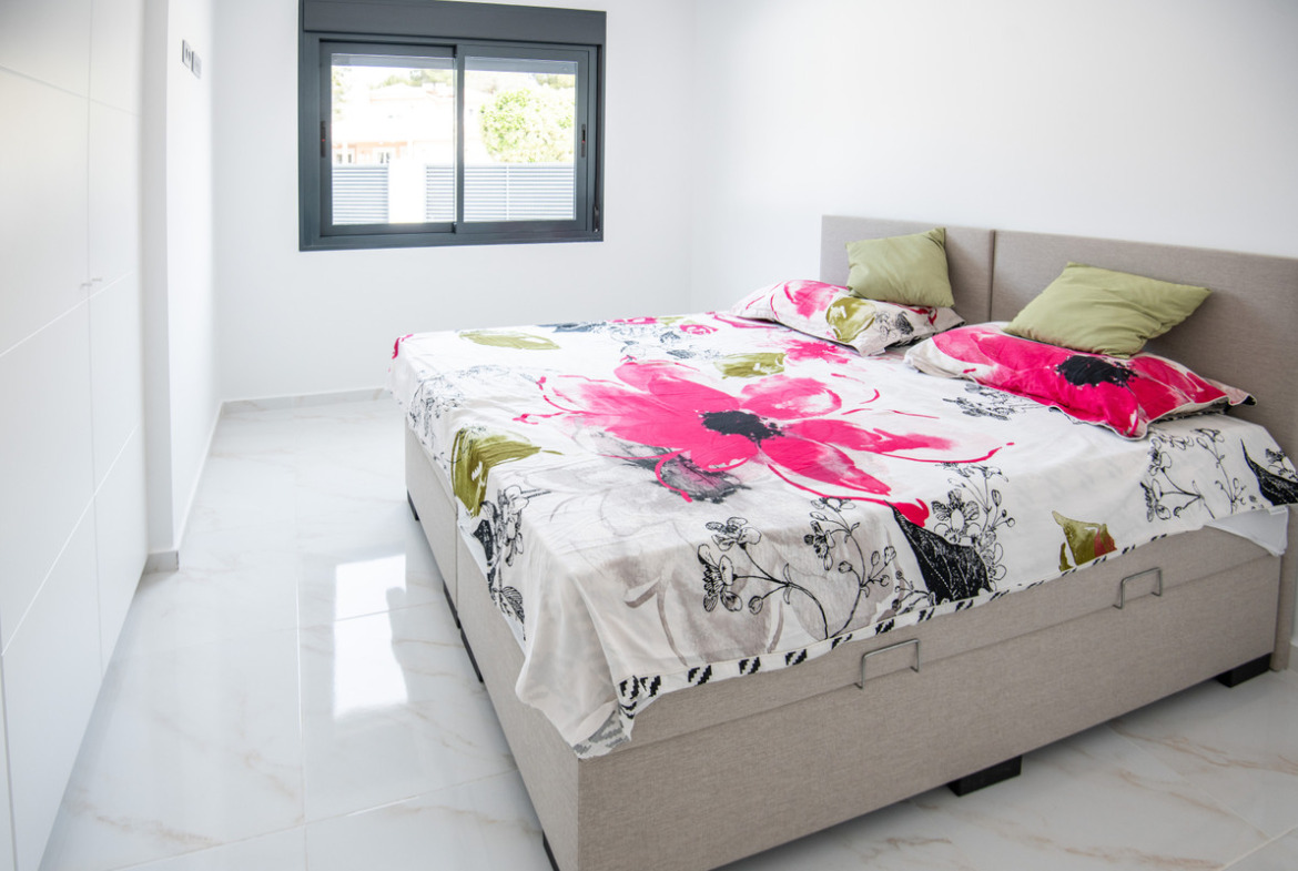 A small promotion of only 5 villas, all built on one level with a layout of 3 bedrooms and 2 bathrooms. The open-plan living-dining area and fully equipped kitchen feature a central island and views of the private pool. The villas are set on independent plots starting from 300 m². A spacious solarium is also included, perfect for enjoying the sun and beautiful views all year round.