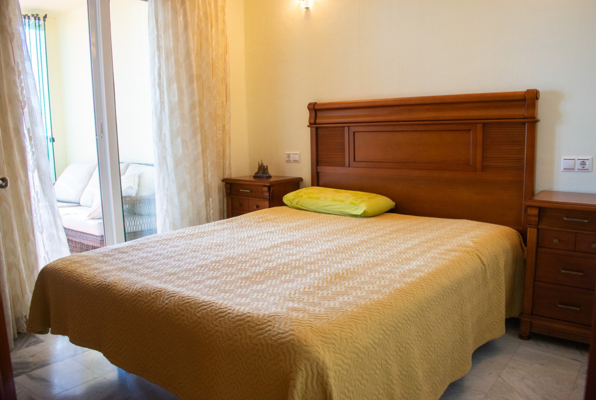 The home features three spacious bedrooms , all with sea views and built-in wardrobes . The master bedroom has an en-suite bathroom and direct access to a private terrace with panoramic views of the Mediterranean . The apartment also has another full bathroom, the perfect place to enjoy unique sunrises and the sound of the waves.