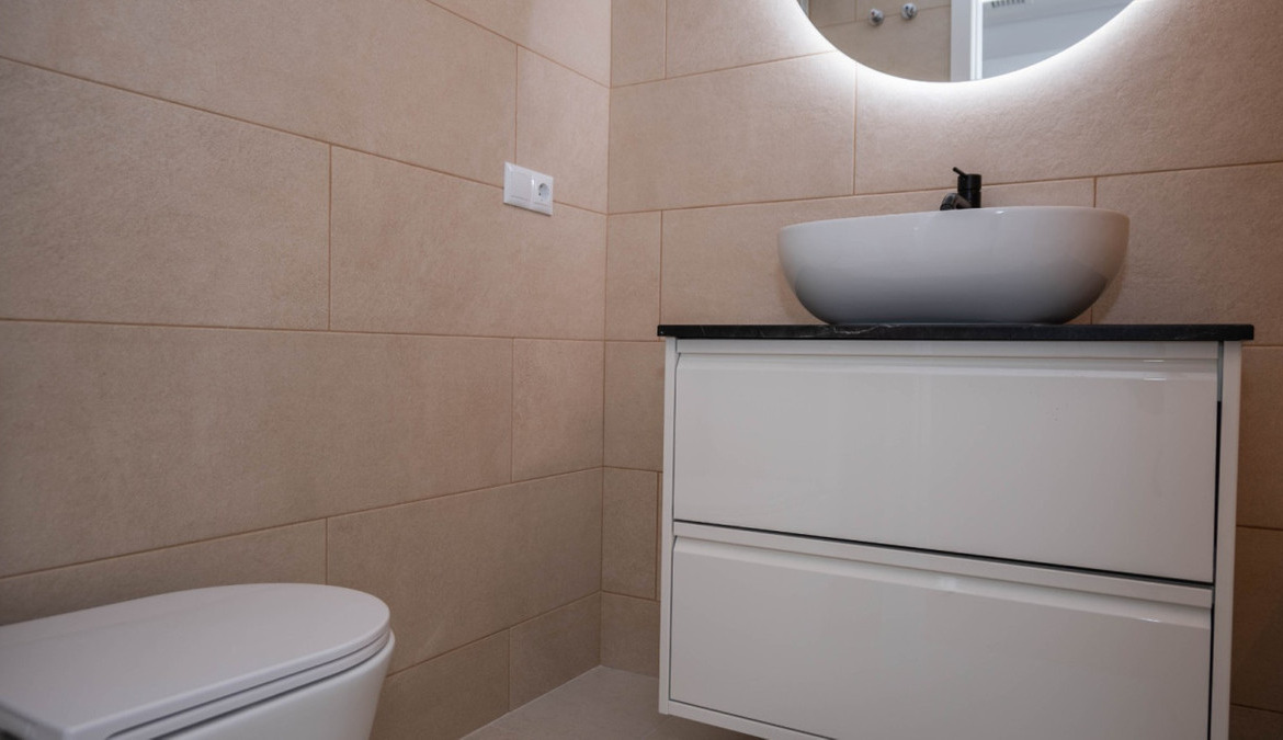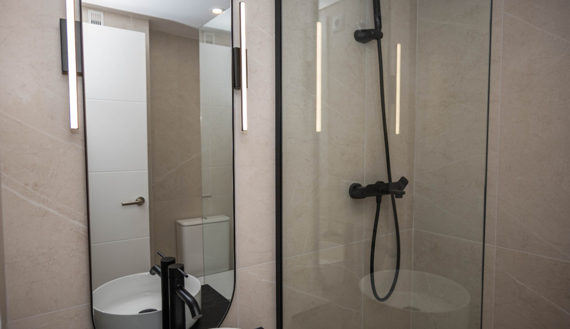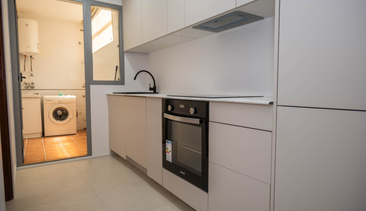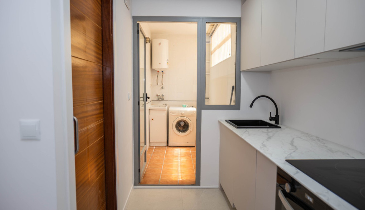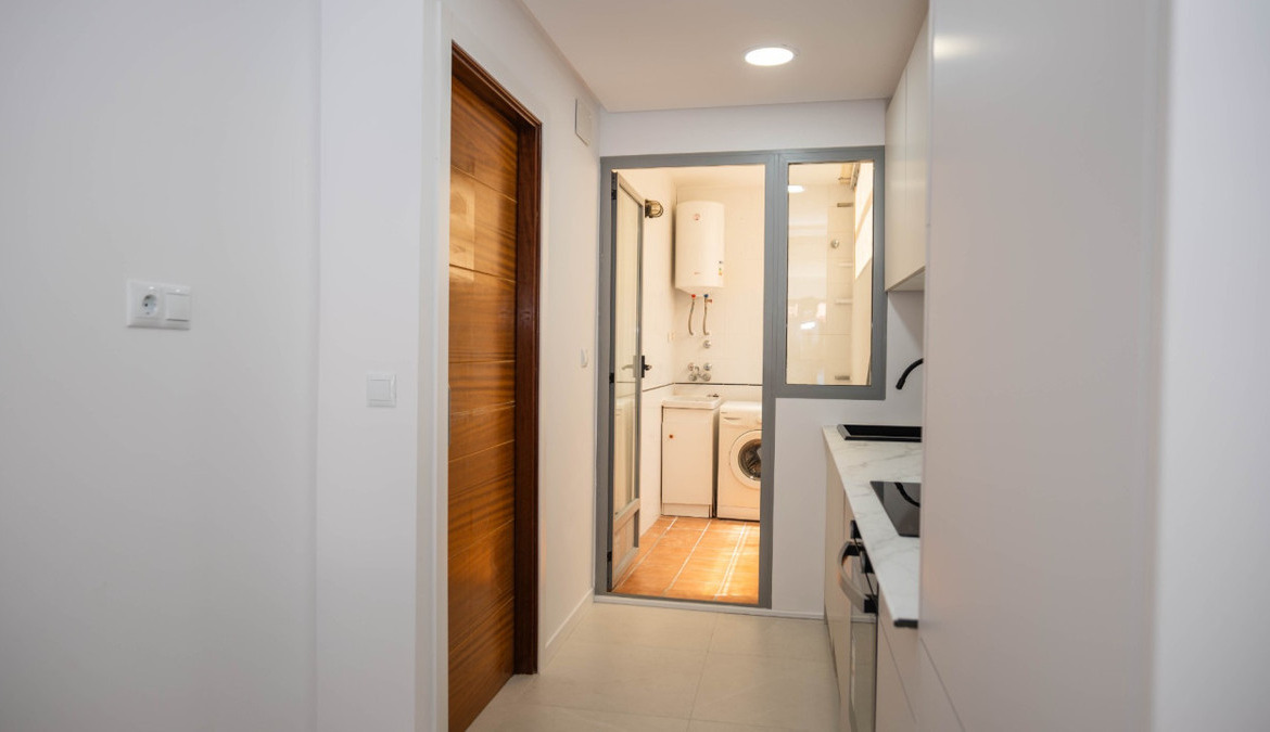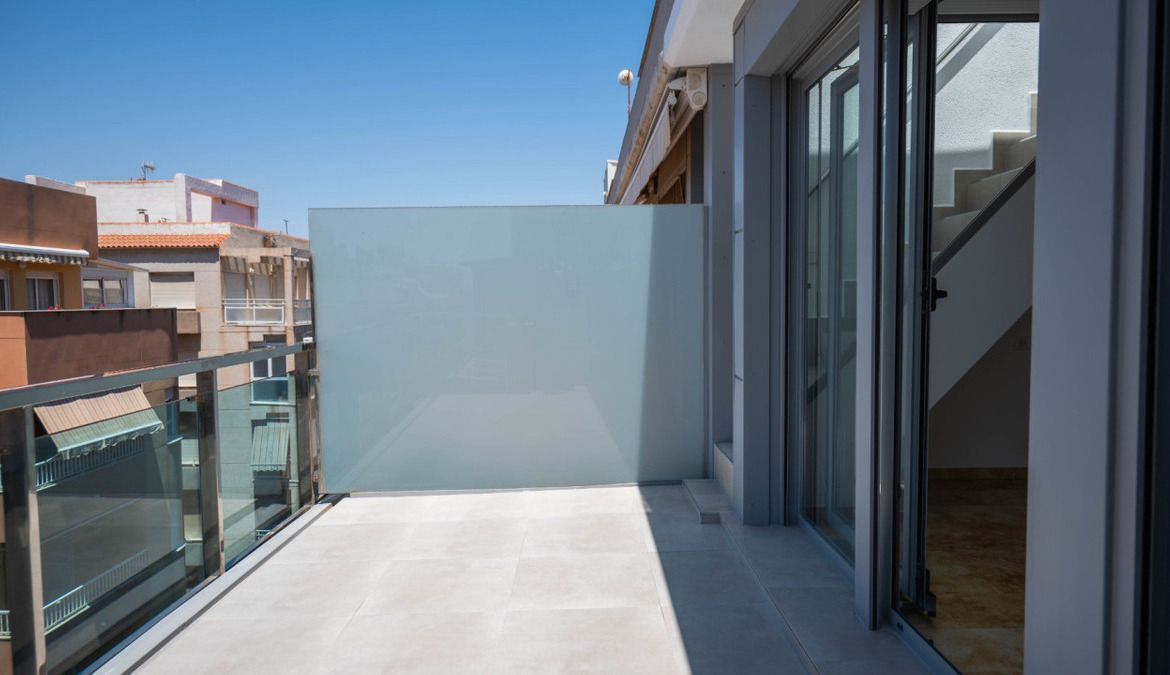 Penthouse with private solarium and communal pool on Los Locos beach in Torrevieja. With an area of approximately 94 m2 and just a few steps (50 meters) from the beach, this property is presented as an excellent opportunity to enjoy the coastal style to the fullest. The property has a bright double bedroom with a built-in wardrobe and direct access to the terrace; it also includes another single bedroom also equipped with a built-in wardrobe. The main bathroom is complete and includes a bathtub while the toilet offers a modern shower. Completely renovated with top quality materials, it features a fully equipped kitchen and modern white lacquered interior carpentry. Its north orientation ensures freshness during the warmest days, perfectly complemented by its porcelain floors that add elegance to the environment. Additional amenities include central air conditioning to ensure your comfort all year round. This building not only enjoys special attention to every detail but also offers magnificent side sea views from its private terrace or solarium, ideal for relaxing or entertaining under the Mediterranean sun. The extras are numerous: an accessible elevator to your front door, a bright terrace where you can enjoy plenty of natural light—and common spaces such as a community pool perfect for both kids and adults to enjoy the best of summer together. Located surrounded by all necessary services including nearby supermarkets, and prominent medical centers along with schools, shops, easy transportation available thanks to the adjacent bus stops. Designed with quality of family life in mind, here is your perfect ultimate vacation home.