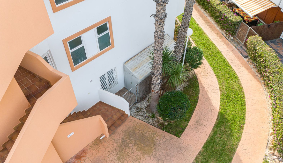 From the living room and two of the bedrooms, you access a large private sunny and private terrace facing the community garden. Here you have plenty of space for dining and relaxation. The property is located in a well maintained and secure gated community with two communal swimming pools and landscaped green areas.