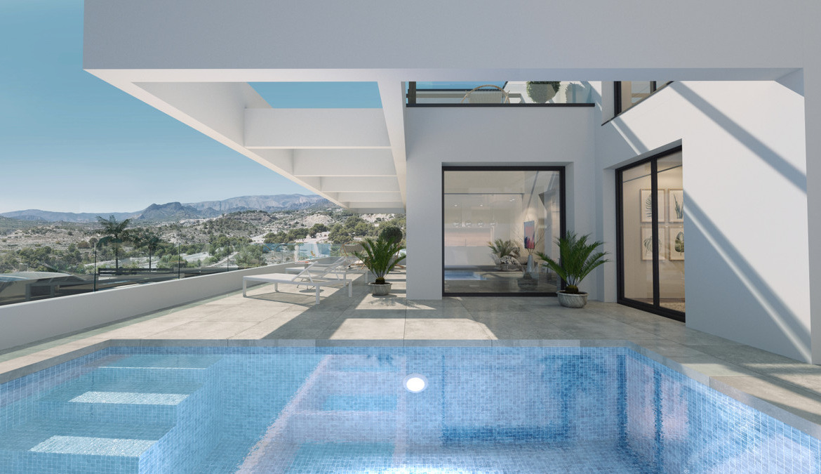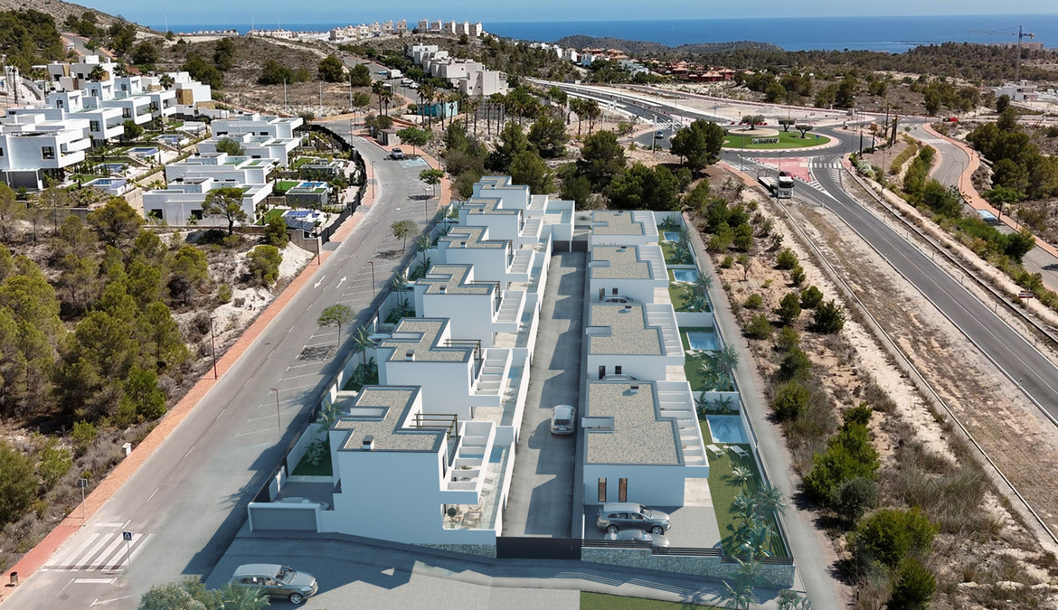This development is a new project of 10 modern design villas, in a natural environment with views of the sea and the mountains, next to the Puig Campana golf course, and a short distance from the towns of Finestrat and Benidorm.