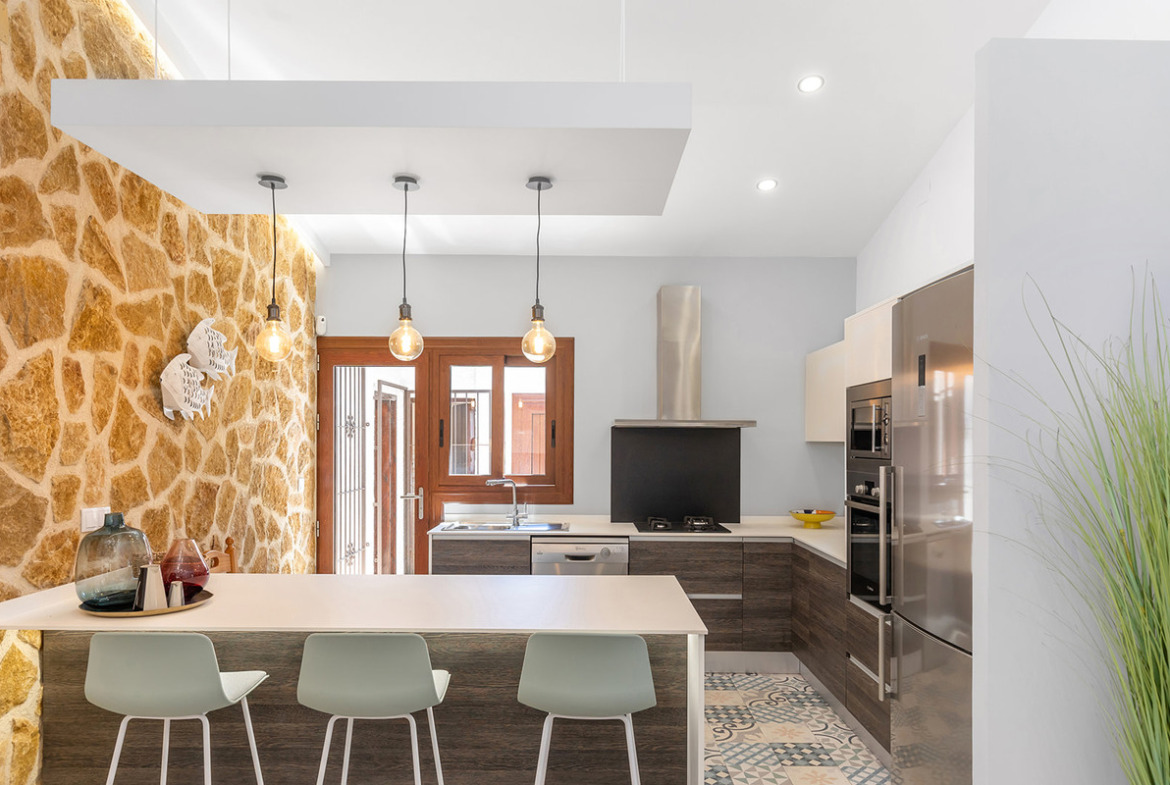 The villa features 4 spacious bedrooms, 2 full bathrooms, a bright living-dining room with direct access to the exterior, and a modern fully equipped open-plan kitchen.