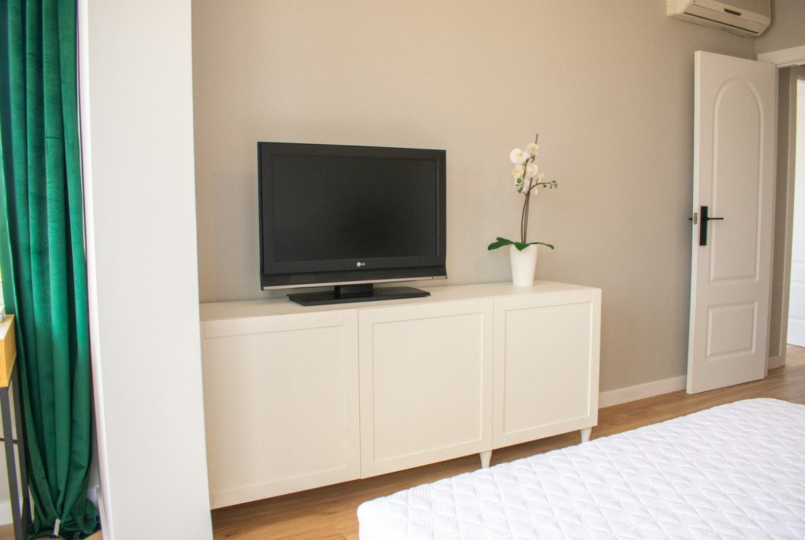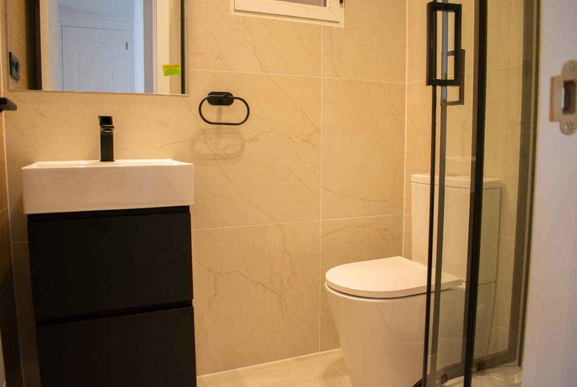 With three bedrooms (two upstairs and one downstairs) and two bathrooms, this townhouse offers functional and well-organized spaces. Downstairs, there is a spacious and comfortable living room with a sofa bed, air conditioning, and a large dining table . The modern kitchen is fully equipped with new appliances and ample cupboards . There is also a double bedroom , a bathroom with a modern shower , a utility room , and a storage room .