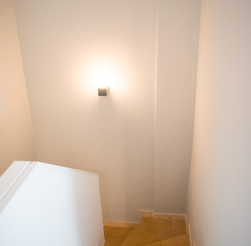 Upstairs is the bright master bedroom , equipped with a work area , double bed , built-in wardrobes, and air conditioning. The third bedroom has two single beds , sea views, air conditioning, and a wardrobe. The second bathroom features a spacious shower and elegant finishes.