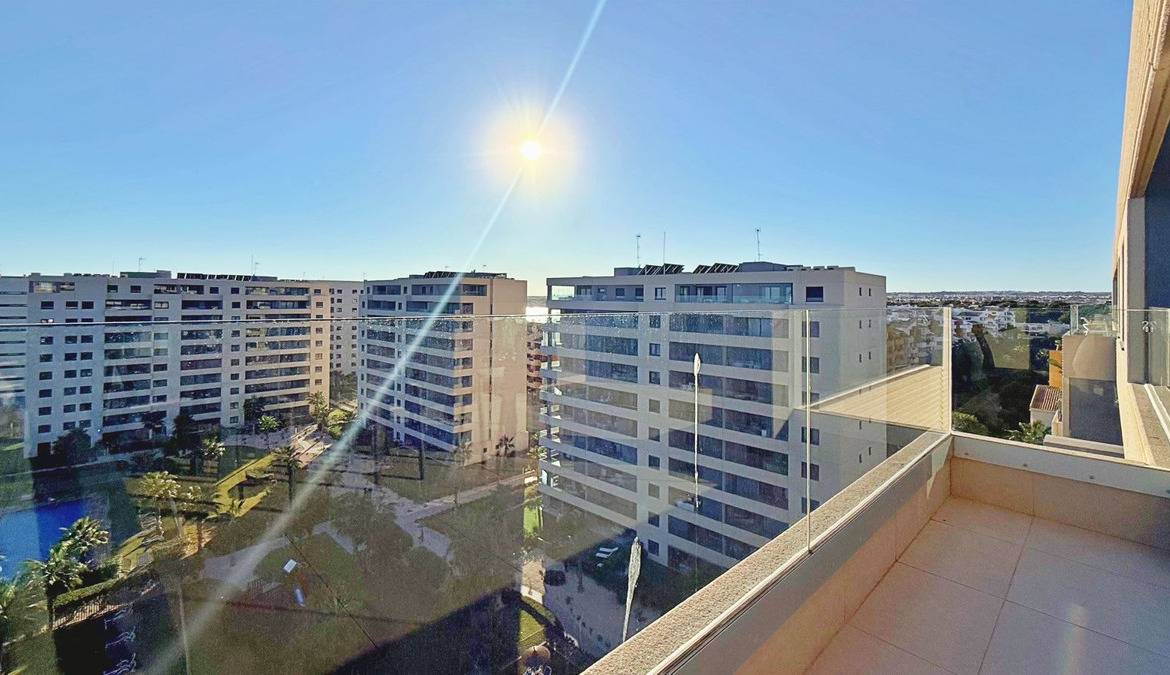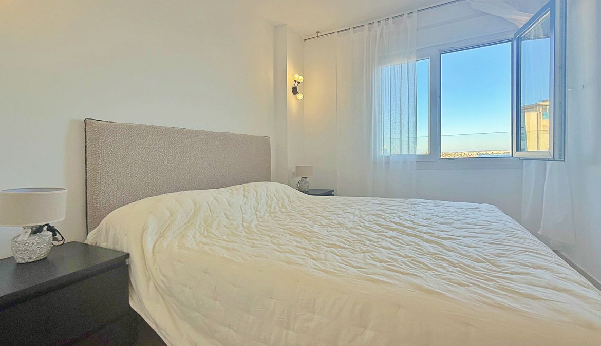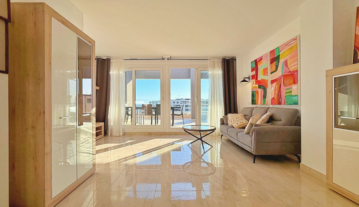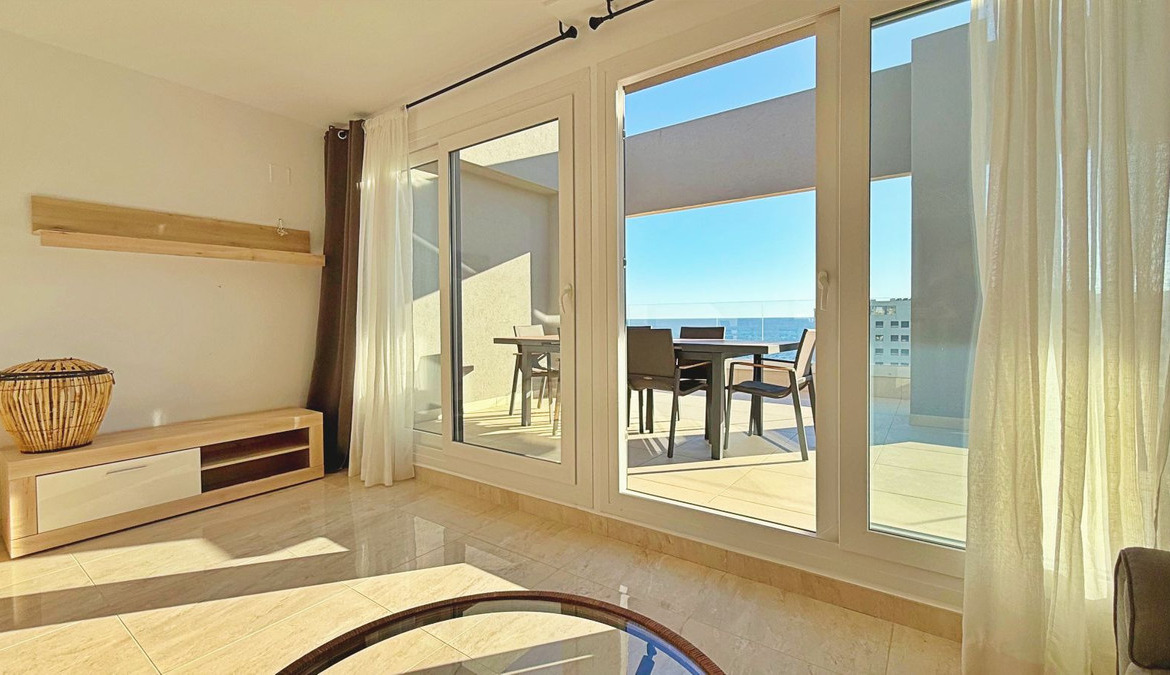 We present this magnificent 3-bedroom, 2-bathroom penthouse with 139 m², located in the prestigious Panorama Mar residential complex, one of the most modern and highly regarded developments in Punta Prima. Situated frontline, it offers stunning open views of the Mediterranean and a privileged setting for those seeking quality, comfort, and exclusivity by the sea.
