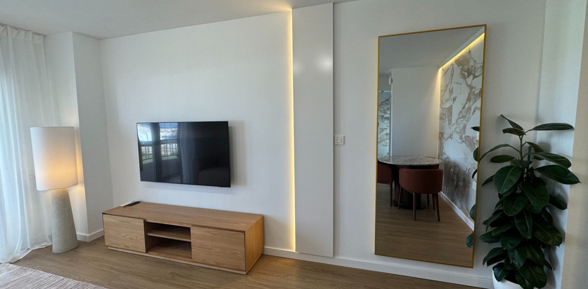The property has a constructed area of 70 m² and has been renovated to a high standard. All windows open directly onto the terrace, creating a seamless indoor–outdoor connection and eliminating internal patios. Panoramic sound-insulated windows ensure excellent acoustic comfort while maintaining open views.